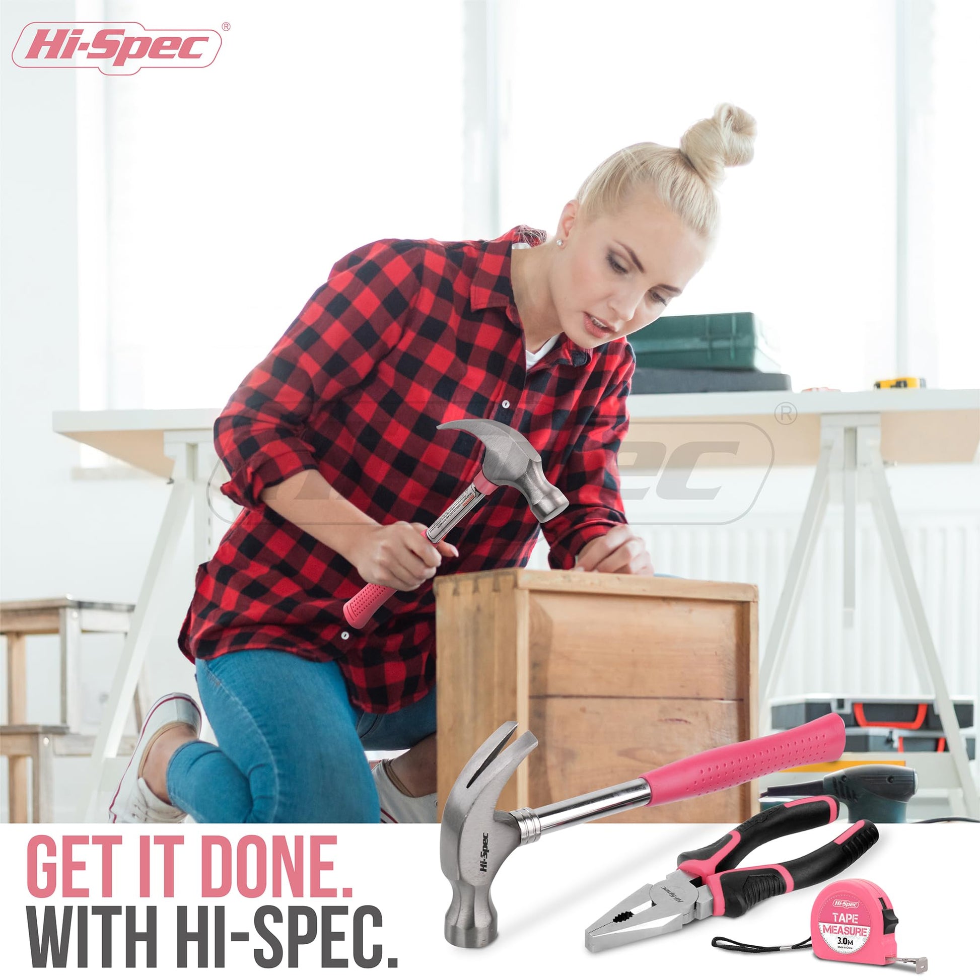 Hi-Spec 30-piece women's tool kit with 12V pink cordless drill, hammer, and screwdrivers - tool set for household, garden, & hobby.