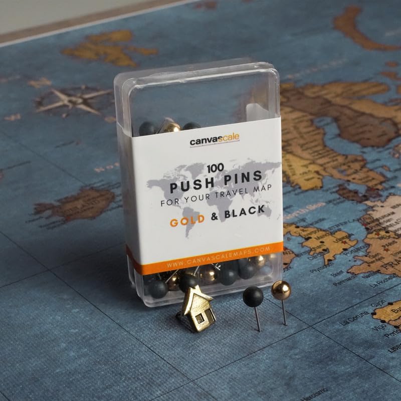 ["Highest Quality: Our world map pinboard is carefully crafted from high-quality materials to provide you with a canvas print of unparalleled quality.","Durable Material: We use cotton fabric that is resistant to mechanical damage to ensure that your world map wall decoration lasts a long time.","Stylish Room Decoration: Transform your home with a beautiful canvas print in the shape of a world map. This decoration is perfect for any room and gives it a unique charm.","Easy Travel Planning: Our world map pinboard with cork allows you to plan your travels and track your adventures. Use the included pins to mark your route.","Educationally Valuable: Perfect for children who want to explore the world. The room décor is labeled with the names of important continents, countries, and cities to learn geography early on."]