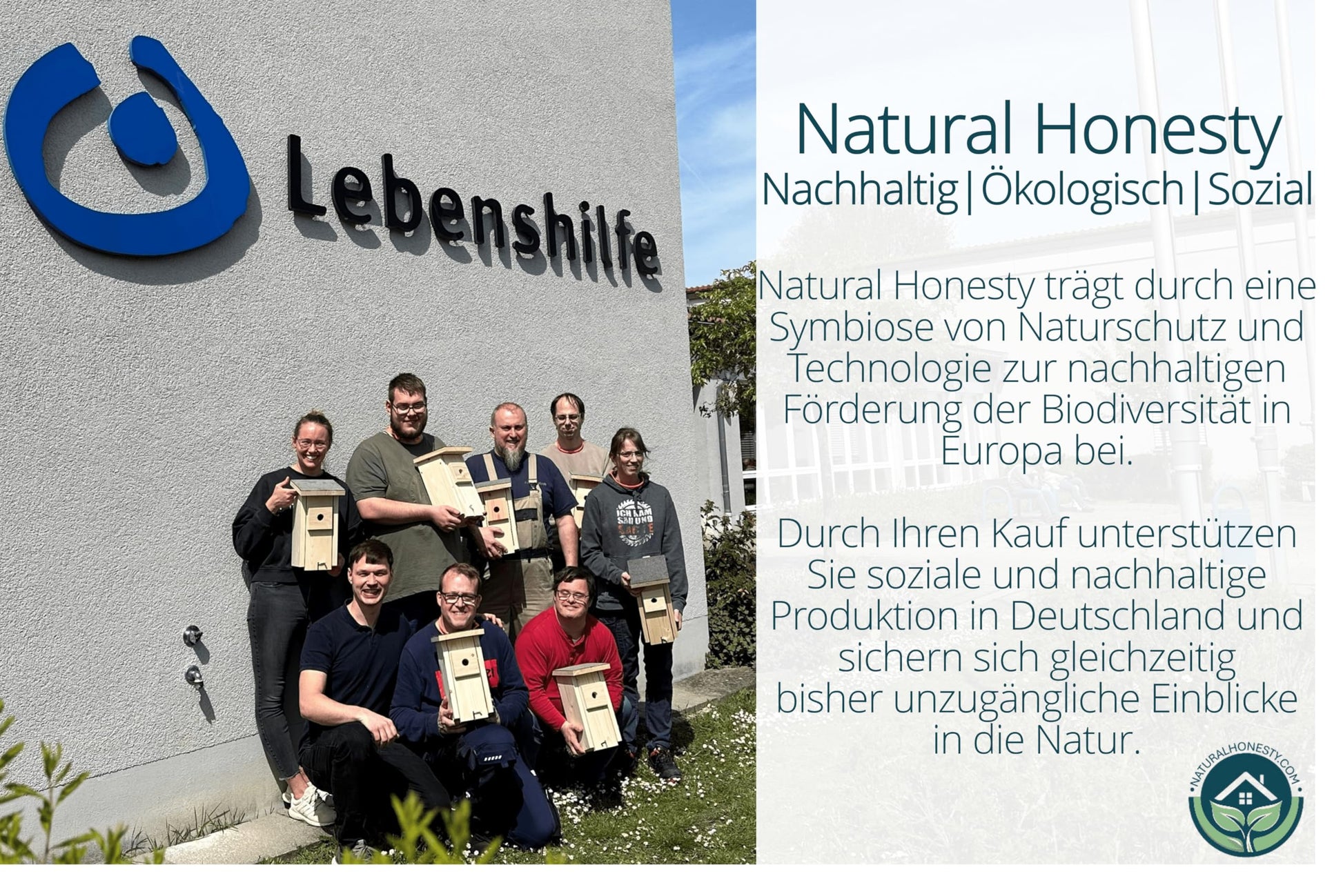 ["📷 BIRD HOUSE WITH CAMERA: The camera is already pre-assembled. Simply install the birdhouse at a suitable location at least 6.5 feet above the ground and start observing.","🥇 HIGH QUALITY: With 20mm board thickness, the nesting box is built according to NABU recommendations. The boards are screwed with stainless steel screws, not stapled. A high-quality bitumen roof ensures longevity.","🎥 LIVE STREAM: Connect the birdhouse to your smartphone or tablet and enjoy the crystal-clear 3MP HD live stream for free on multiple devices from home, work, or vacation.","⭕ 3 VARIABLE WOODPECKER GUARDS INCLUDED 28 millimeters, 32 millimeters, and oval entrance hole diameter. This hole size supports local tits (blue and great tit), nuthatches, and robins.","🦊 WOODPECKER AND CAT PROTECTION. The little chicks are well protected from intruders.","🐤 CLIMBING AID: Inside is a climbing aid for the young birds, providing support during their first flight attempts.","👨👩👧👦 SHARE: Share your joy of bird nesting with up to 5 friends or family members for free and enjoy the streaming together.","✔ UNDISTURBED: Thanks to the power connection, you can observe the nest building until the chicks fledge WITHOUT disturbing the brooding for a battery change.","💚 ENVIRONMENTALLY FRIENDLY and PEFC certified: The nesting box is made exclusively from PEFC-certified wood from local German forests. Unlike many manufacturers, the nesting box is not imported from China.","❤️ SOCIAL: The nesting box is produced in cooperation with a workshop for people with disabilities (WfbM). By purchasing, you support individuals with disabilities in leading a self-determined life and integrating into society."]