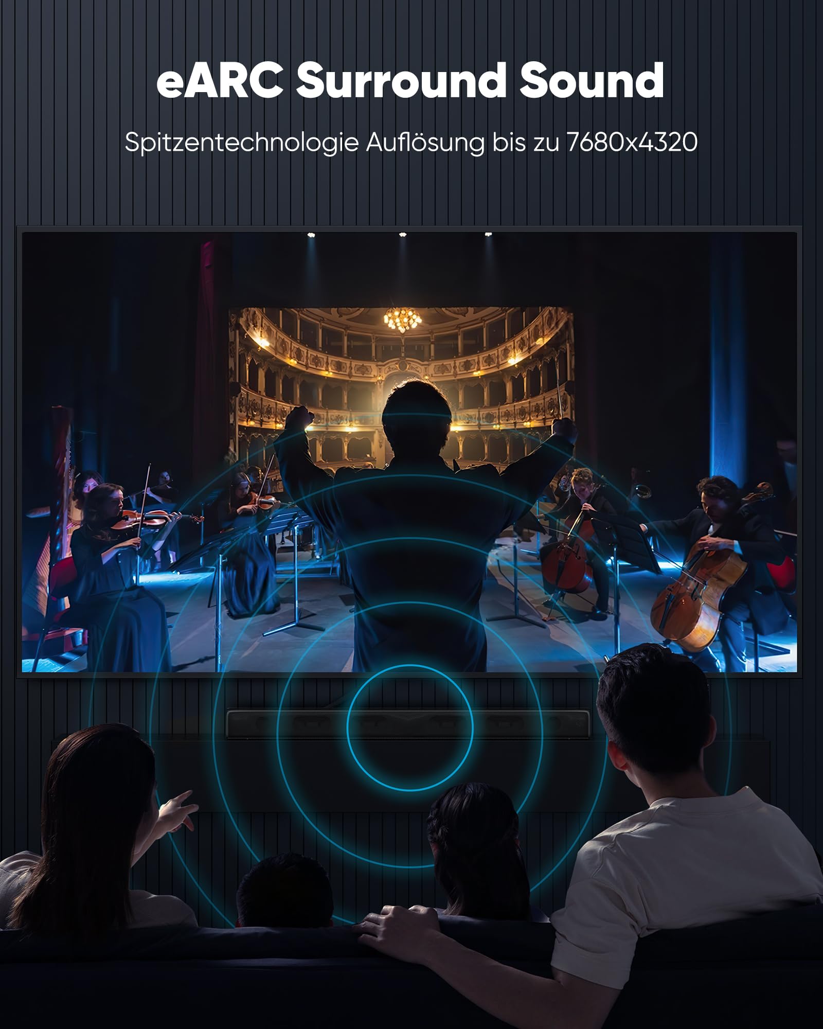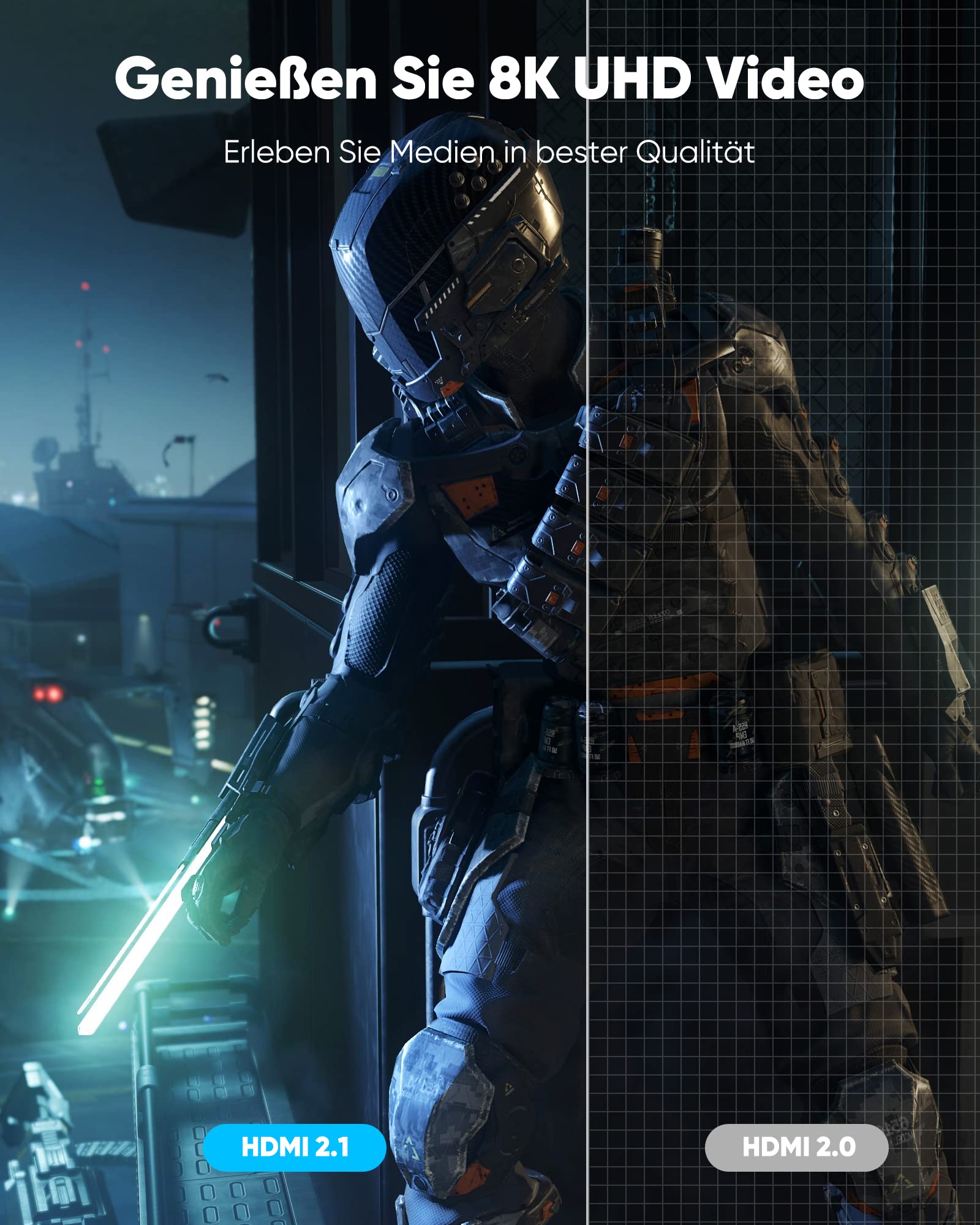 Highwings HDMI 2.1 Cable 7.5m 8K, 48Gbps Highspeed 8K@60Hz HDMI Cable 4K@120Hz 7680P eARC HDCP 2.2&2.3 DTS:X Dynamic HDR 10 Compatible with PS5/4/3 Soundbar HDTV Monitor
