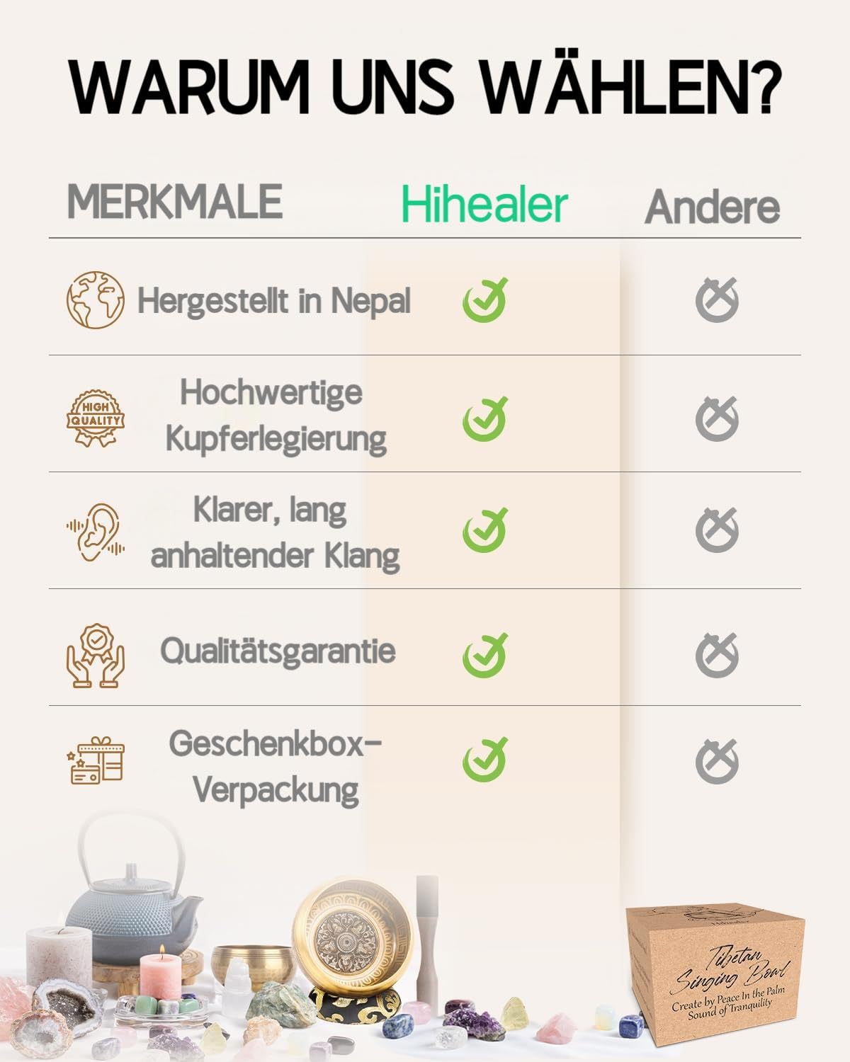 Hihealer Tibetan Singing Bowl Set 100% Handmade in Nepal, Large Singing Bowl with Instructions, Mallet, Cushion, Gift Box; Meditation, Yoga, Chakra Healing, Christmas Gifts for Women