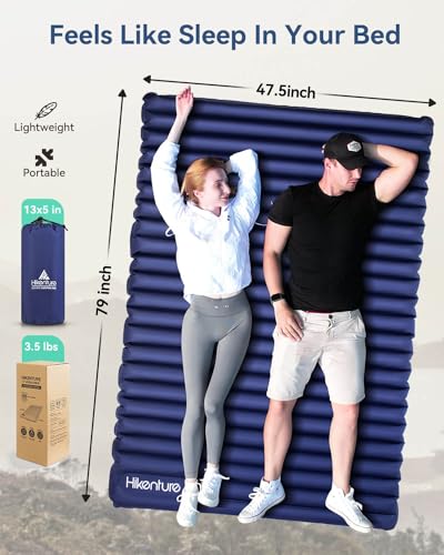HIKENTURE Double Sleeping Pad - Inflatable Camping Air Mattress - Lightweight and Compact - for Backpacking, Hiking, Tent, Dark Blue with Foot Pump