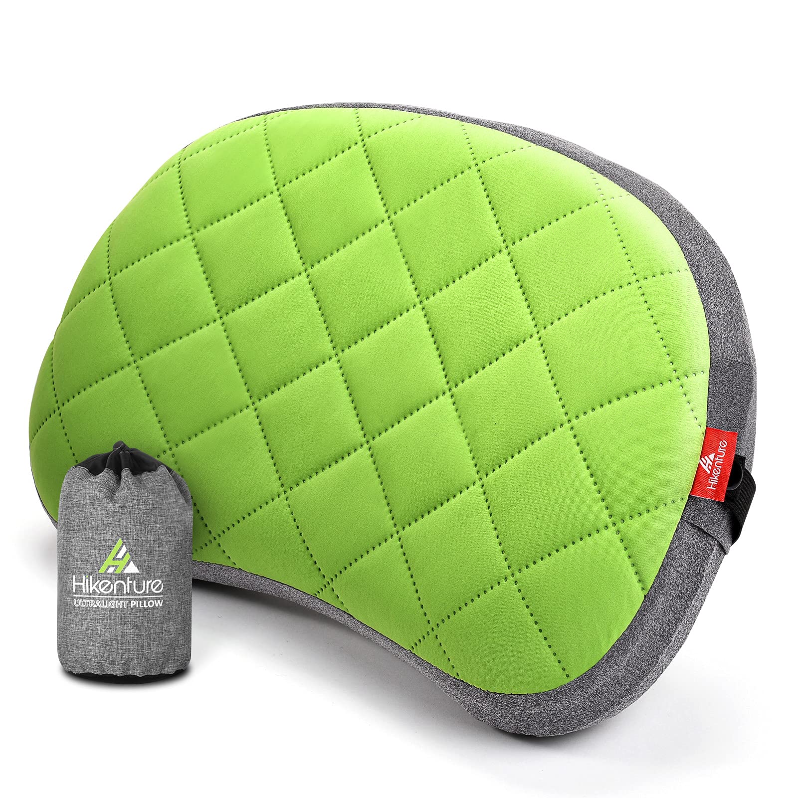 HIKENTURE Inflatable Camping Pillow with Removable Cover, Inflatable Travel Pillow Lightweight, Ergonomic Pillow on the go, Inflatable Camping Pillow Outdoor, Inflatable Pillow-Green