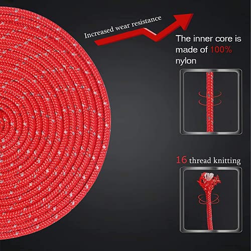 "Features: The inner premium nylon cord is very durable, can withstand a large impact force, excellent stability even in bad weather. A plastic spool makes storage easier, convenient to carry. With the latest curved red anodized aluminum cord adjuster, the guy rope can be freely adjusted"