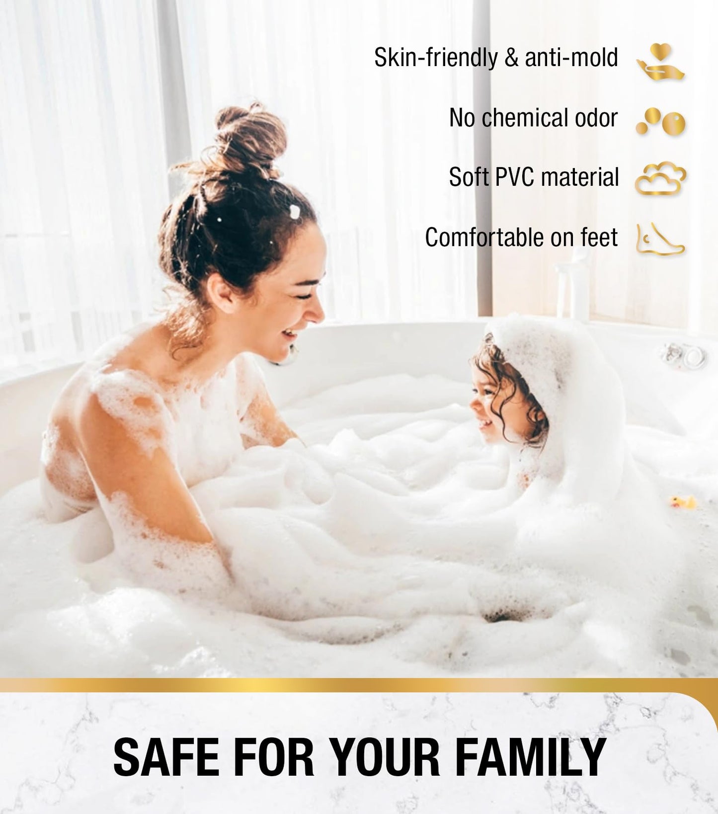 Premium quality for maximum comfort: Our bath mat is made of soft PVC material and provides a soft and gentle feeling for your skin. This shower anti-slip mat features realistic contoured pebble design, providing a massage-like feeling in the shower, ideal for seniors, babies, and small children.