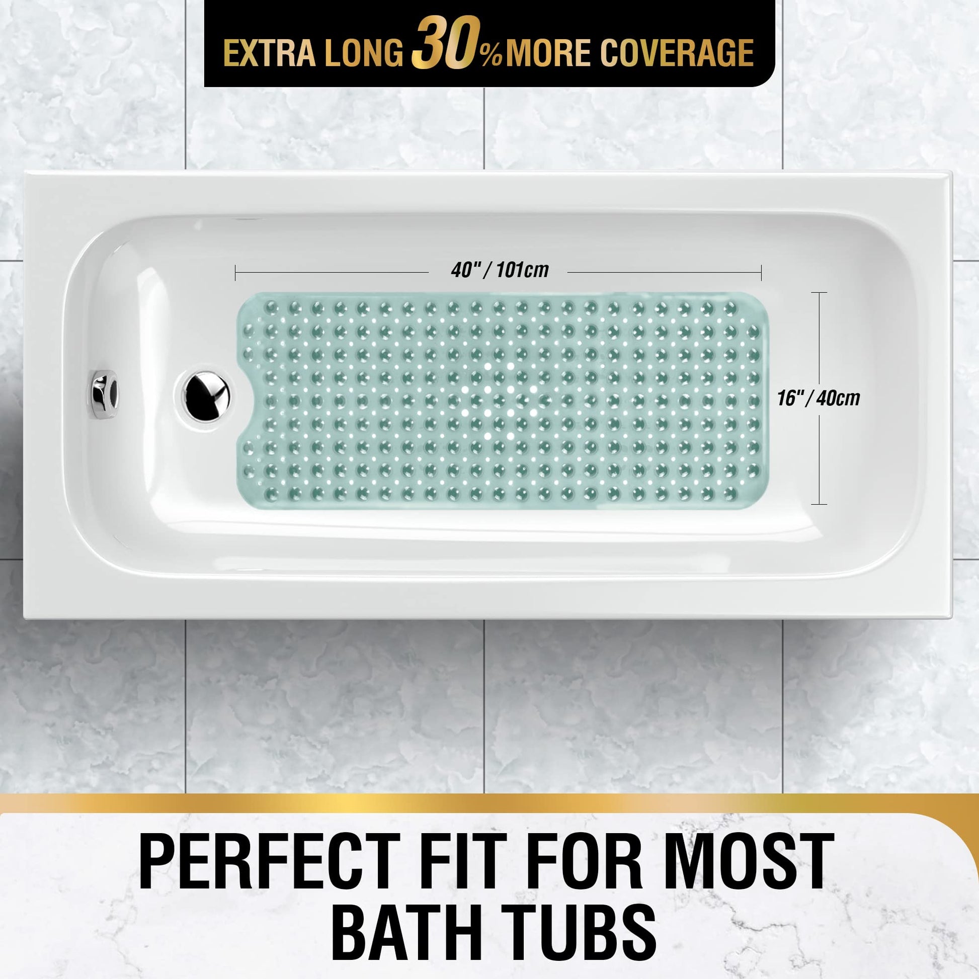HITSLAM non-slip bathtub mat, 101 x 40cm extra long anti-slip mat for bathtub, non-slip shower mat BPA free, mold resistant & machine washable bath mat, green