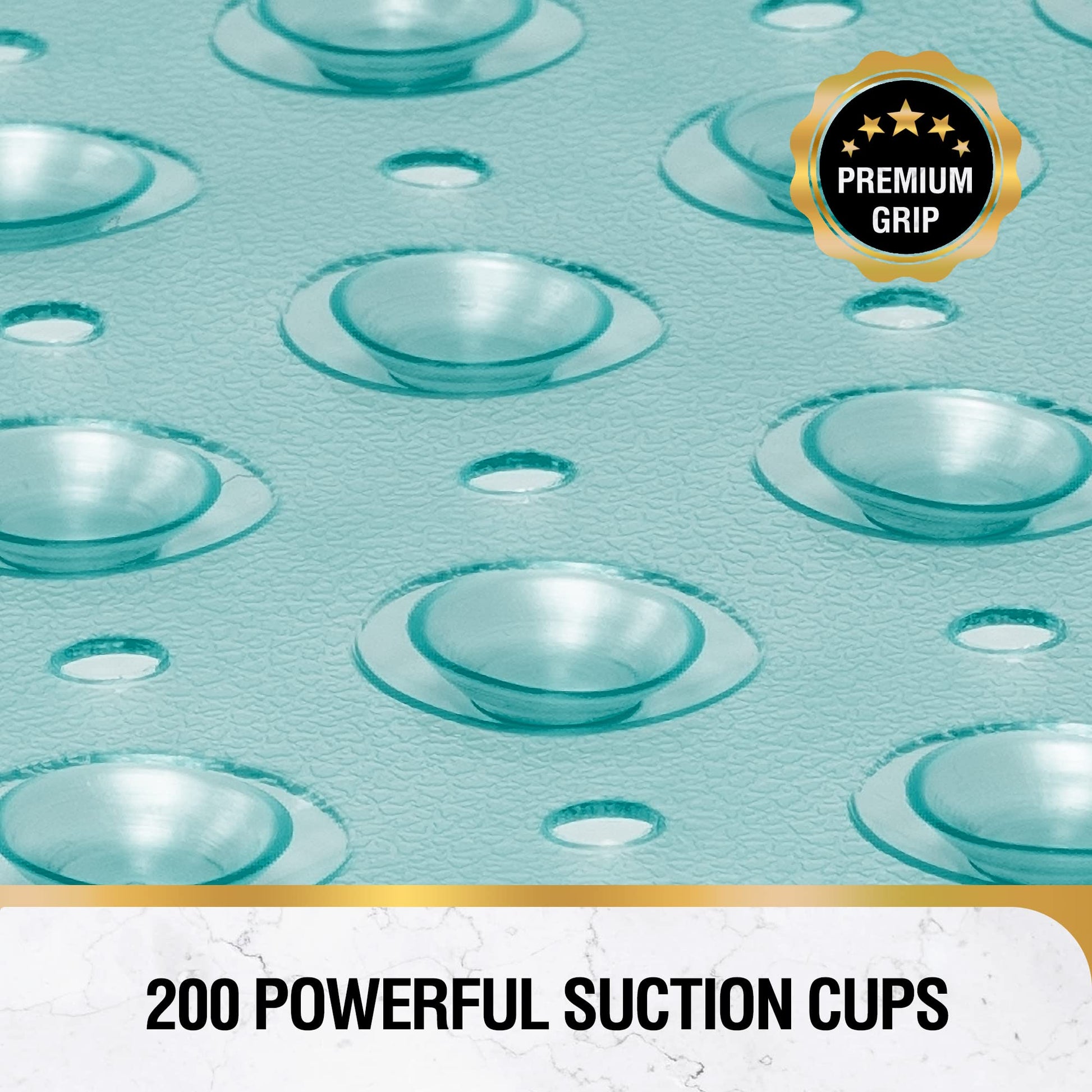 Non-slip mat with ultra-strong grip: Our non-slip bathtub mat has 200 strongly adhesive suction cups that keep the mat securely in place on smooth, clean bathtubs and showers. The texture on the top of the bathtub mat increases friction so you don't slip or fall in the tub.
