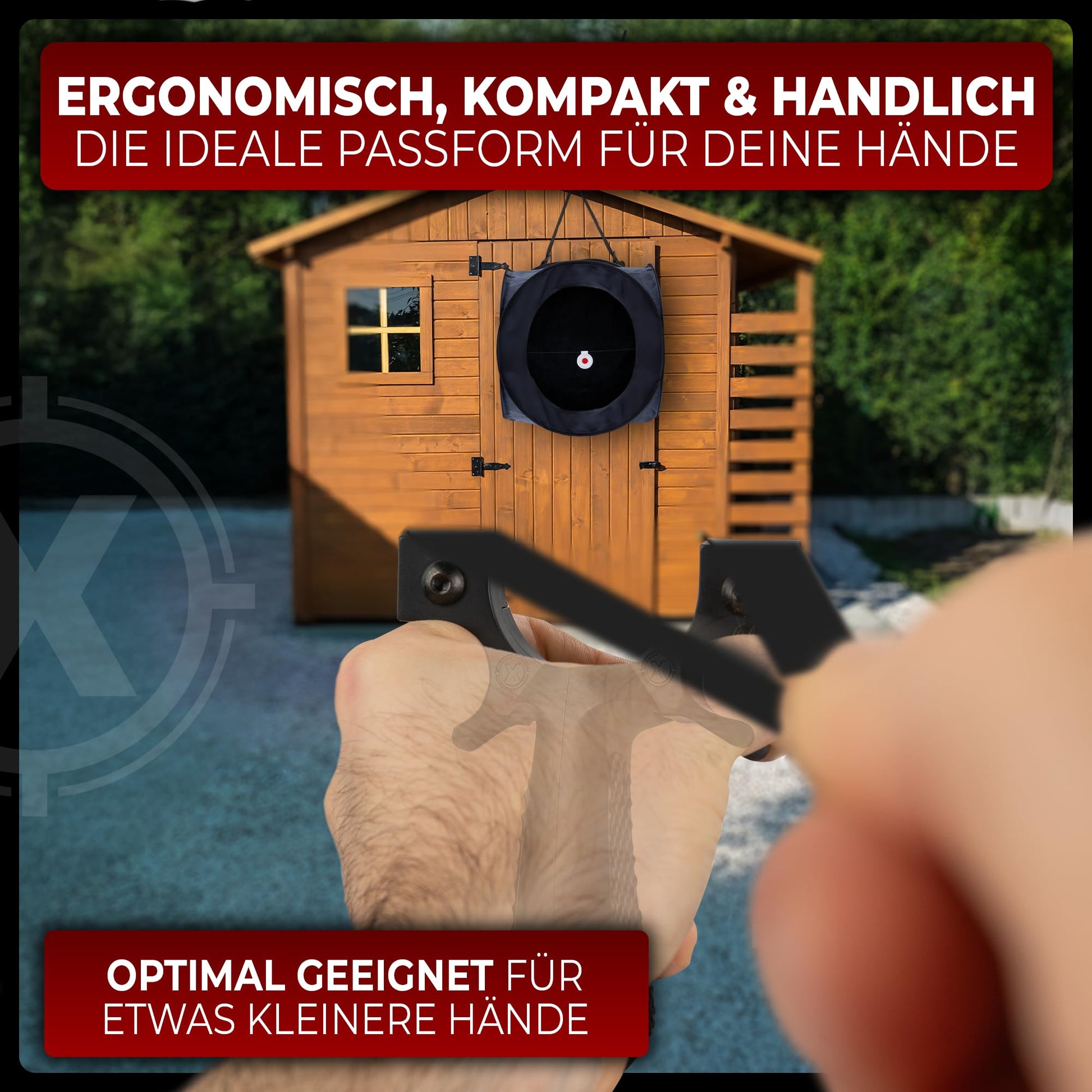 ✅ XXL-BUNDLE SET - The HITX set consists of a high-quality slingshot with Super Grip surface, 300x clay balls (8-9mm), and 2x premium rubber bands.
