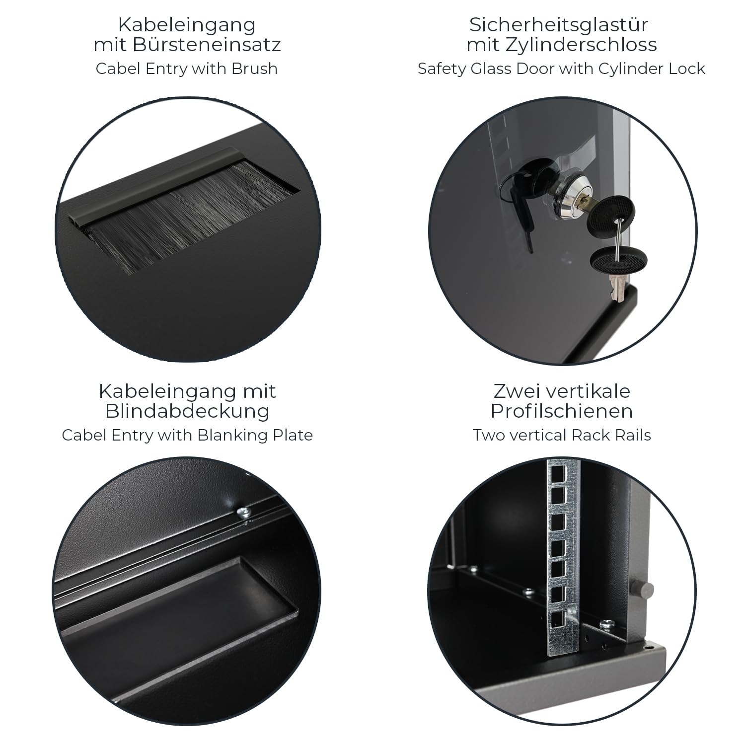 ["High quality - Fully assembled 10\" network cabinet for floor and wall mounting with 6 units (U)",
