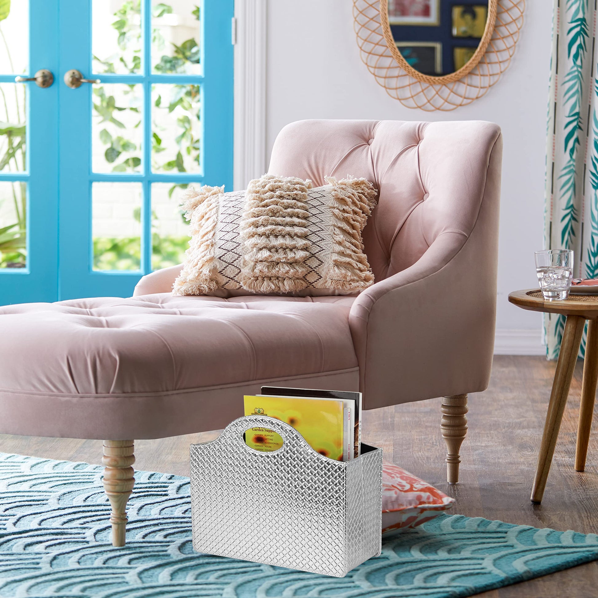 HofferRuffer magazine holder with handle, foldable PU leather magazine stand, document holder, magazine basket, newspaper storage for office, coffee table, living room, reception (Silver)