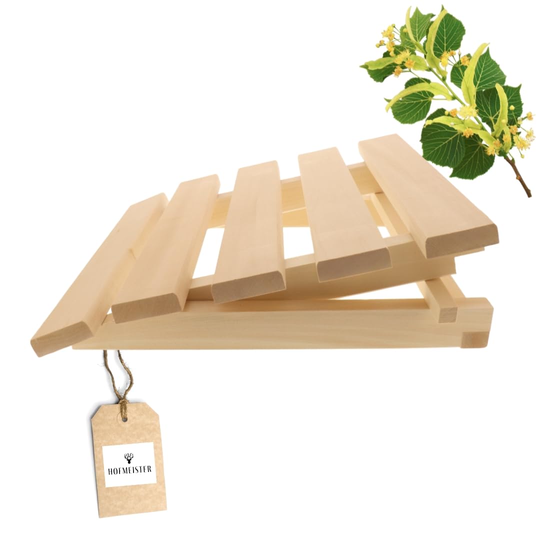 ✓ SUSTAINABLE: The natural wood of the linden tree contains no plastic or similarly toxic substances. It has only been treated with a nourishing plant oil to prolong the durability of the sauna headrest. With our neck support, you are investing in a good and relaxed seating position during your sauna session. Our sauna backrest is also sustainable and 100% made in the EU."