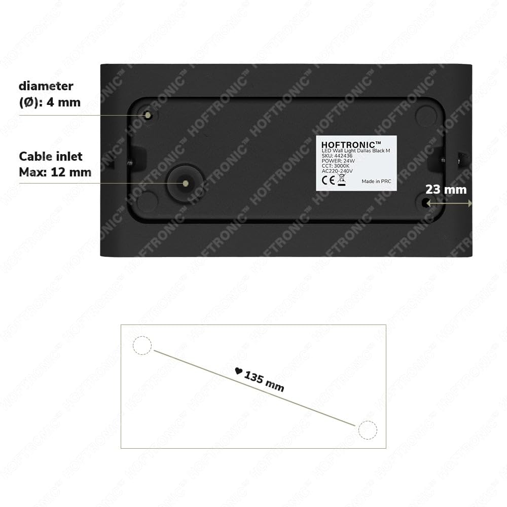 HOFTRONIC - Dimmable LED Wall Light Outdoor Indoor Dallas M Black 12W 3000K Warm White Up Down Spotlight IP54 Waterproof Aluminum. Outdoor light fixture for bathroom, garden, living room wall lamps.