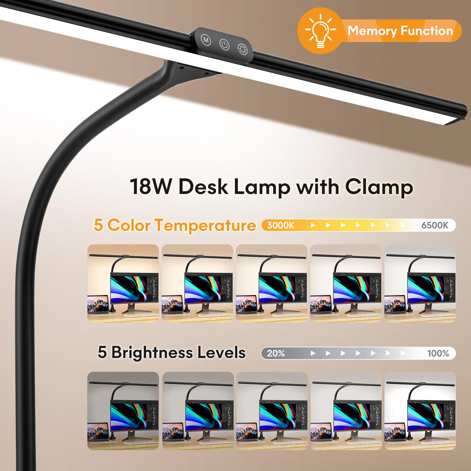 "[31.5In Wider Lighting Range] - Enhance the lighting of your workspace with our ultra-wide architect desk lamp that extends 31.5 inches from end to end. Designed for L-shaped desks with multiple monitors or larger workspaces with curved screens. This monitor light provides a larger lighting range than traditional desk lamps, ensuring maximum brightness without dark spots."]