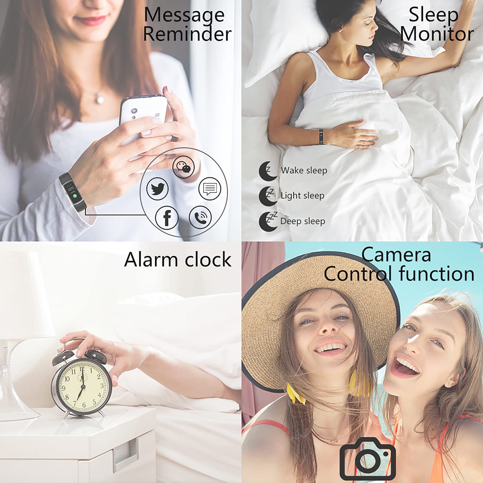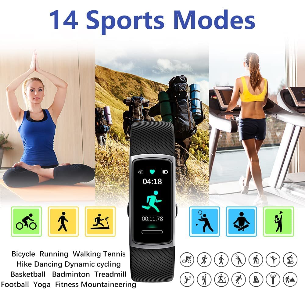 ["5 Levels of Screen Brightness Can Be Adjusted: Our fitness tracker features a durable 2.5D 0.96 inch TFT LCD color screen.","14 Different Sports Modes: This fitness bracelet has 14 different sports modes that can help you to know your personal sports data more accurately, making your workout more effective. By connecting your phone and fitness tracker, you can activate the GPS function to receive speed and distance, route, and other real-time data.","24 Hour Data Monitoring: This smartwatch can monitor your steps, calories burned, distance traveled, and workout minutes throughout the day. Continuous automatic heart rate monitoring so every rhythm can be recorded. The smartwatch also automatically analyzes your sleep patterns. You can analyze sleep quality by deep sleep, light sleep, and wakefulness.","Never Miss a Message: Connect the fitness bracelet watch to your smartphone. The watch will vibrate to notify you when your phone has received calls, SMS, and SNS messages, including Facebook, Twitter, WhatsApp, Linkedin, Messenger, etc. You will not miss any calls or messages.","8 Days Battery Life: Open the top part of the pedometer watch, there is a USB interface that you can connect to any standard USB port. It only takes about 1-2 hours to fully charge the fitness tracker, and the fully charged standby time can reach 5-8 days."]