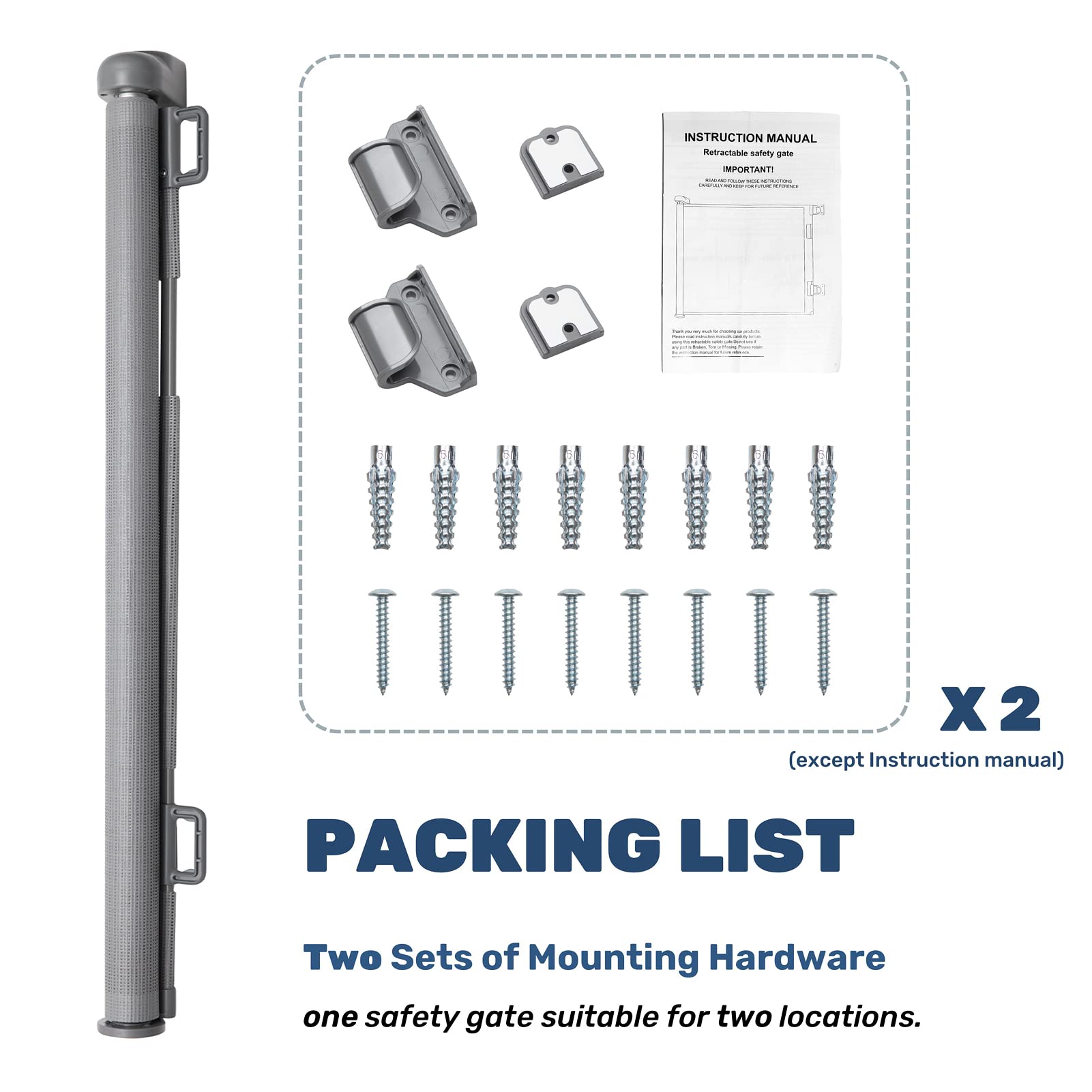 "Flexibility - Includes two sets of mounting hardware for different locations. Easy to attach and detach, ideal for transitioning between the living room, stairs, and other areas.",
