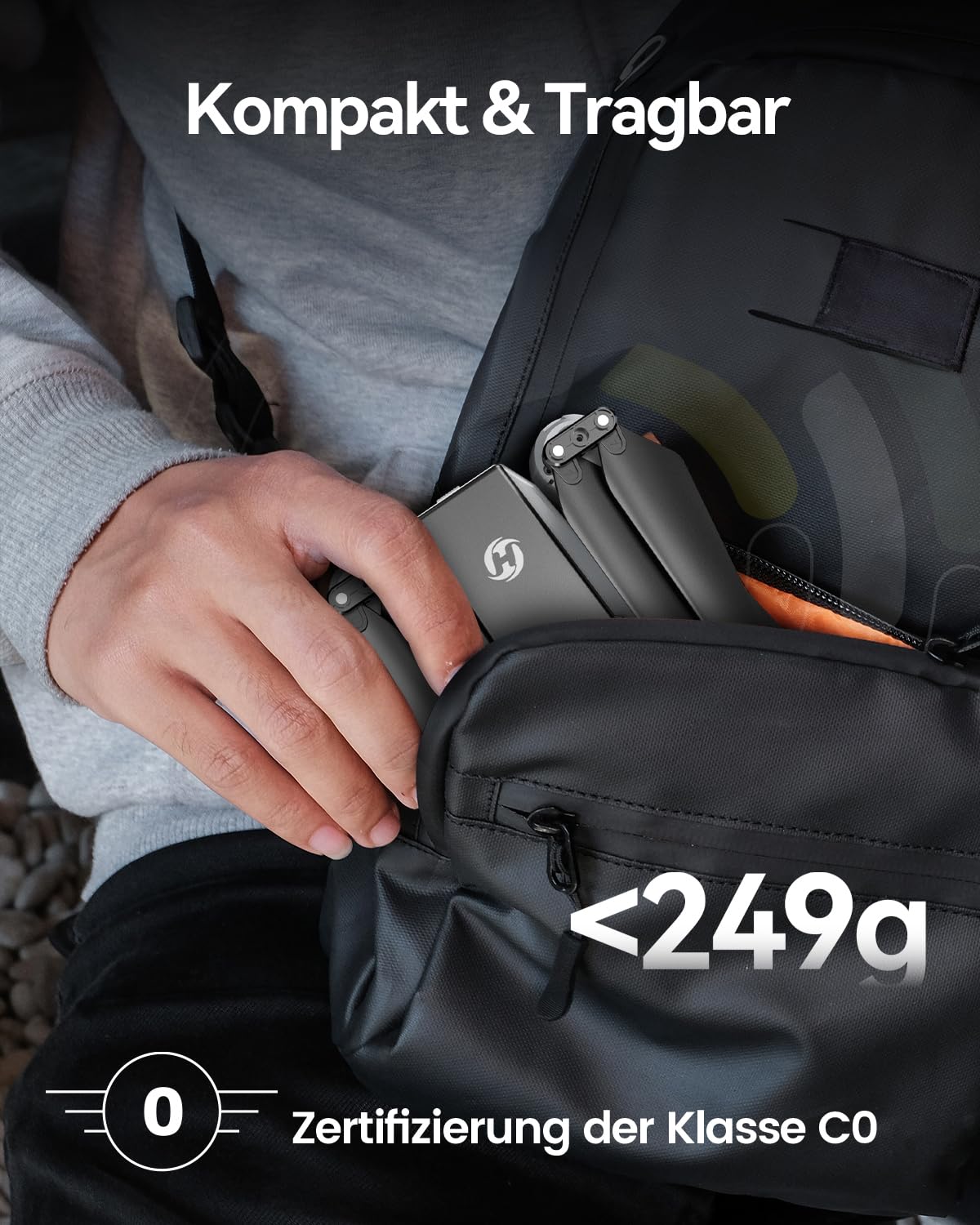 ["Ultra Clear 4K Camera: The 4K camera drone is equipped with a 120° FOV and a 90° adjustable lens, providing a perfect 3840x2160 resolution image. The 5G FPV transmission delivers smooth and stable videos even at high speeds or strong winds.","GPS Smart Flight Mode: Enjoy worry-free flights with GPS and automatic return. If the drone loses signal, goes out of range, or has low power, it will automatically return. No more fear of losing the drone.","Practical Design: This GPS drone comes with a carrying case. The foldable design makes it easy to store and portable for outdoor travel. And with a weight of less than 250g, no registration required. 20 minutes of flight and photography with one battery.","APP Simplifies Operation: In addition, there are various flight modes in the APP such as "Follow Me," "Waypoint Flight," and "Point of Interest." Even inexperienced users can start flying with just one click. A great flying experience!","Suitable for Various Pilots: 2 speeds, Headless Mode, Altitude Hold, Low Battery Warning... All these features combined with exceptional quality make it suitable not only for beginners, but also for advanced users.","C0 Certification: This product weighs less than 249g and is C0 certified. Please note that due to the integrated camera, registration as a drone pilot may be required and drone insurance may be legally required. We provide excellent customer service, so if you have any questions, please contact us. Please use under adult supervision."]