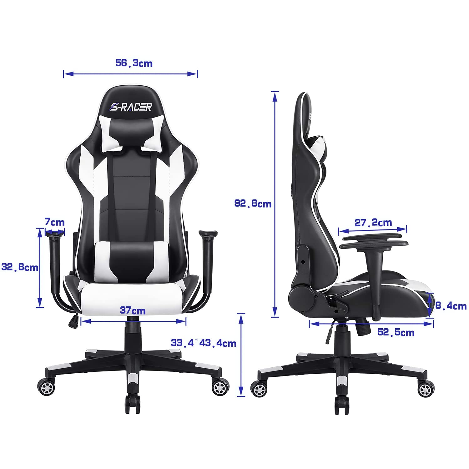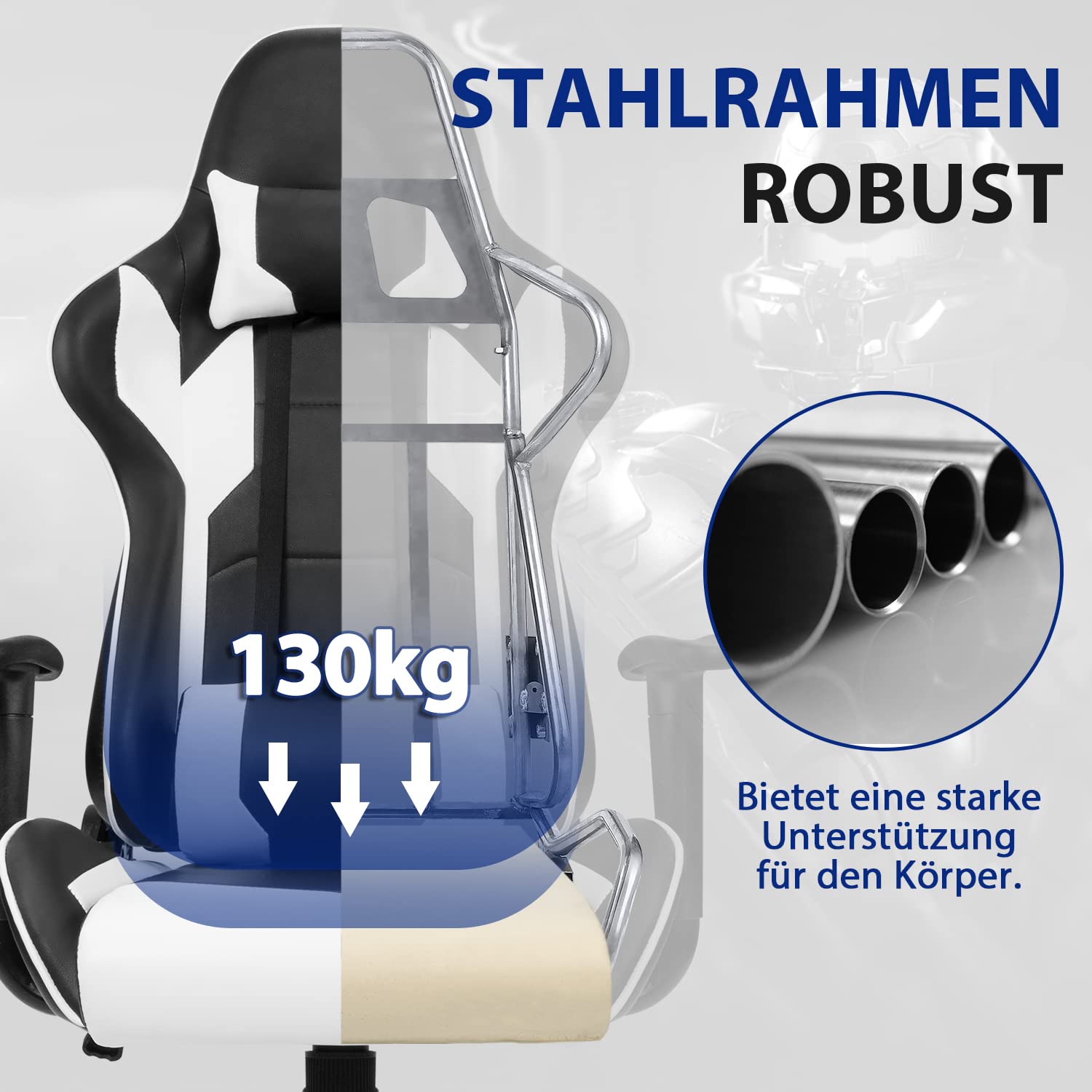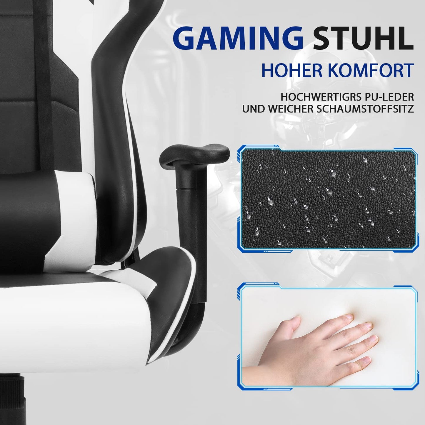 Homall Gaming Chair, ergonomic, adjustable height and back support, gamer seat, office chair, with wheels, quiet, headrest, lumbar support (white)