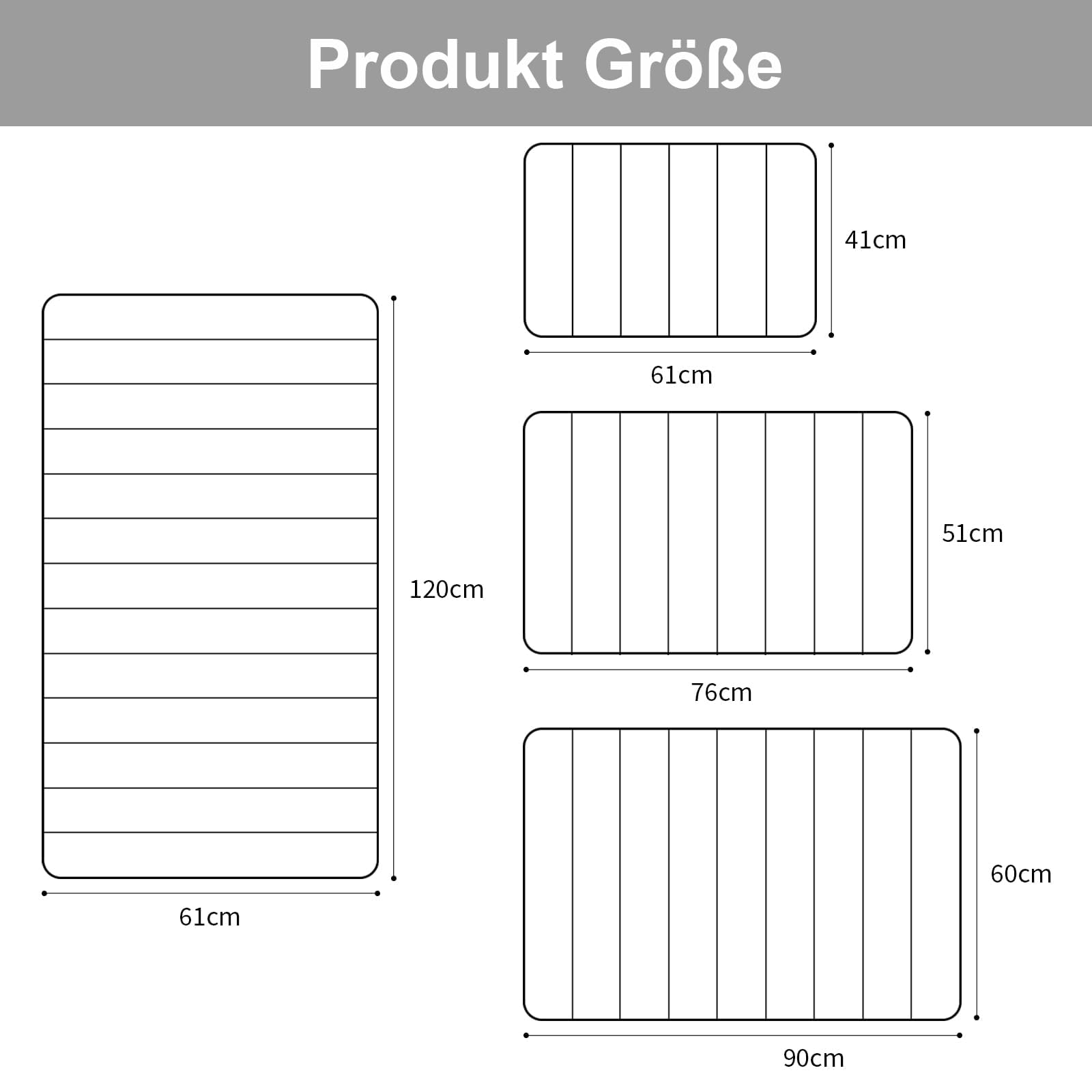 STANDARD MEASUREMENTS: Measures 24 x 36 inches and is suitable for bathroom, toilet, shower room, bathtub, living room, bedroom, etc.