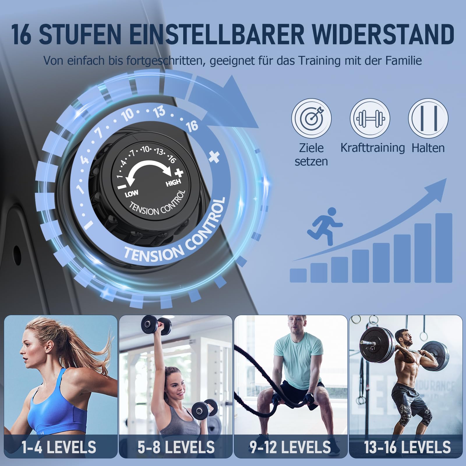 "【16 Adjustable Resistance Levels】: Thanks to the easily adjustable resistance settings of the MOSUNY rowing machine, users can customize their training to their fitness level and goals, from light cardio sessions to intense strength training. By combining sturdy construction with advanced technological features, it is designed to provide an exceptional workout experience tailored to both beginners and experienced fitness enthusiasts.",