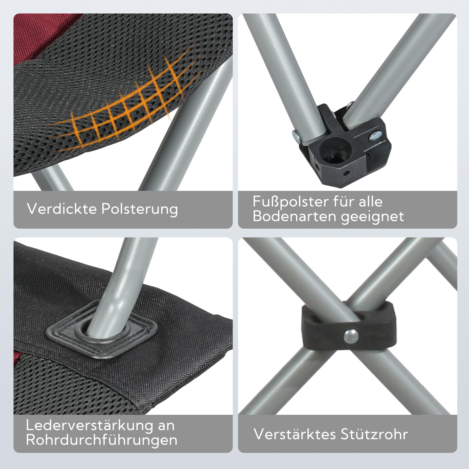Comfortable and Breathable Material: The seat is made of durable 600D Oxford fabric, which is abrasion-resistant and tear-resistant, extending its lifespan. Areas such as the seat and headrest are equipped with breathable 3D mesh fabric, which provides additional ventilation. Even on hot summer days, the foldable camping chair remains pleasantly cool and comfortable.