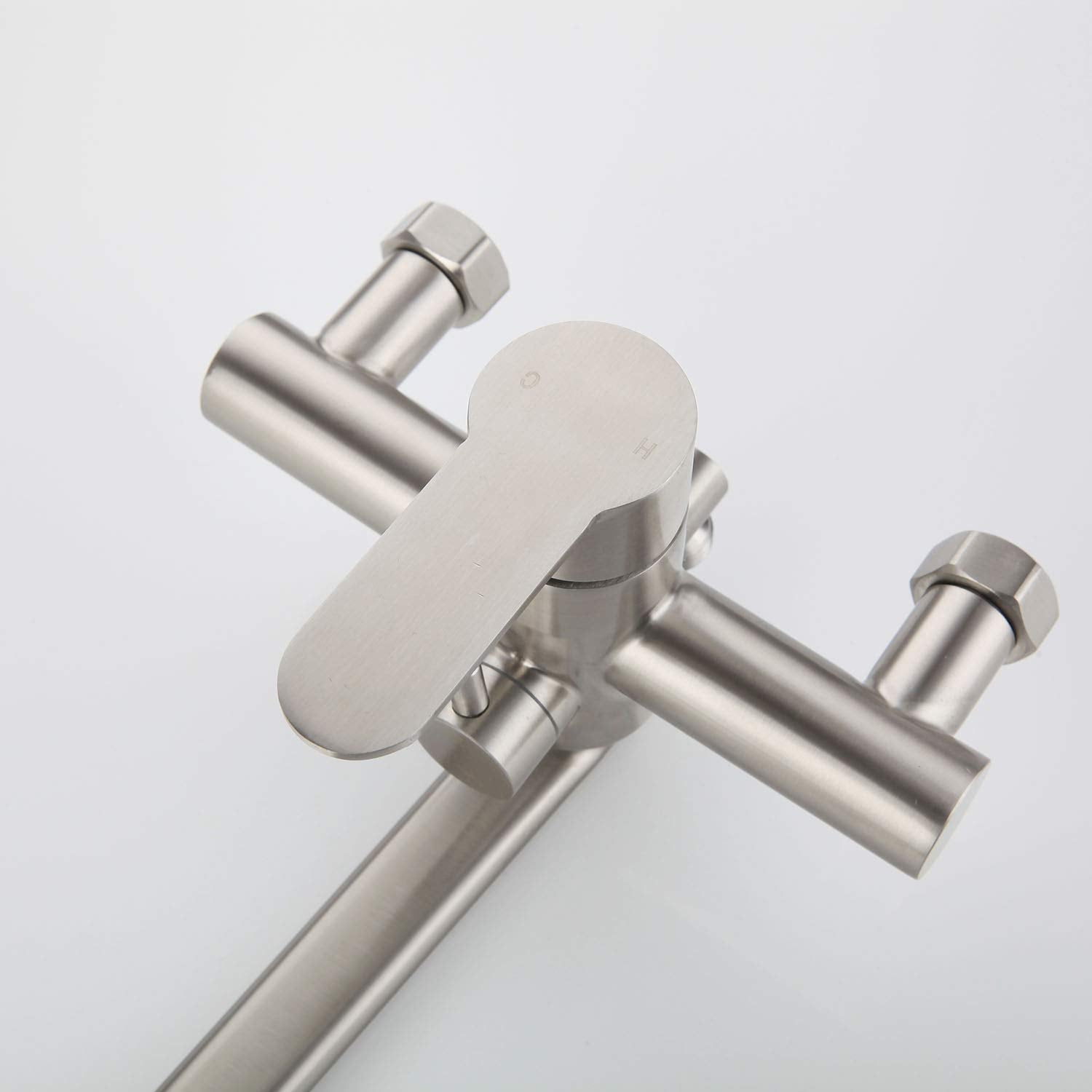 ["Easy Installation: Complete accessories, Highly precise thread interface, Standard 1/2 inch standard connection, quick and easy to install. including bathtub faucet, garland, and rubber gasket. The two fixing holes can be adjusted from 135 mm to 165 mm","Environmentally friendly bathtub faucet: Made of high-quality 304 stainless steel and brushed surface treatment for long-lasting durability and reliability","Brushed surface: Hand-polished stainless steel surface prevents scratches, corrosion, and discoloration","Two water outlet modes: Rotate the middle button to switch between faucet water outlet and shower water outlet. Simple design, easy operation","Pressurized hand shower: strong and powerful water outlet, better rinsing. Wall-mounted faucet with swivel spout very long 350 mm"]