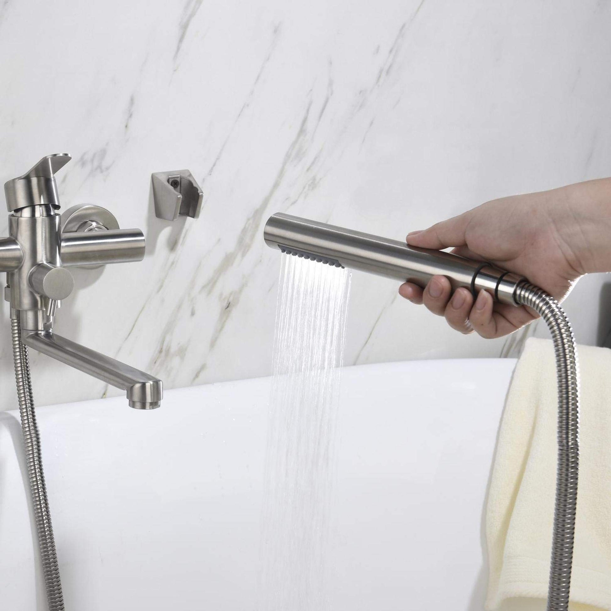 HomeLava bathtub faucet with handheld shower bathtub faucet surface mounted single lever mixer for wall mounting brushed stainless steel tub valve with diverter single lever faucet mixer with 1.5m shower hose