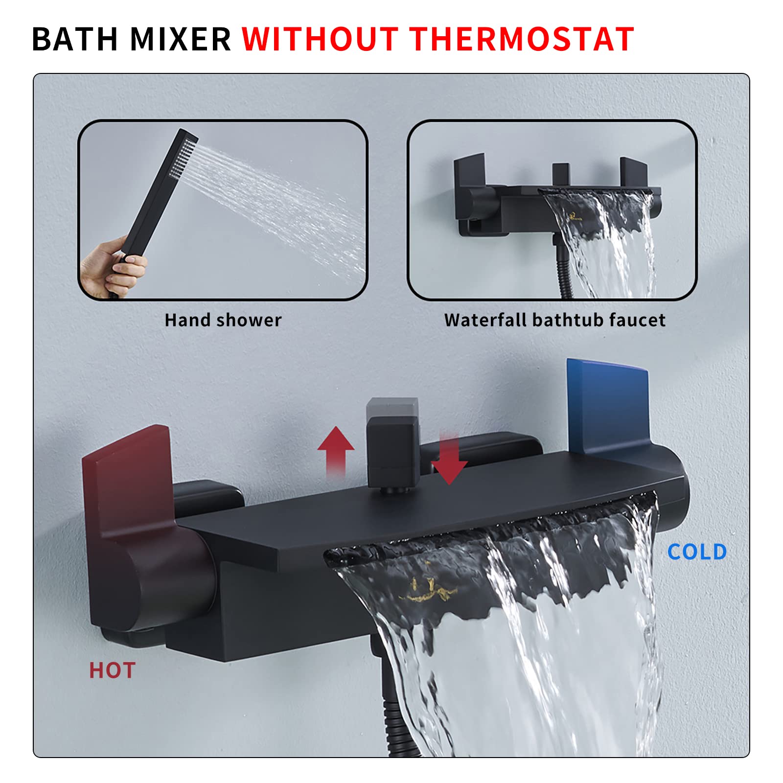 HOMELODY Black Bathtub Faucet Waterfall Faucet Tub Mixer with Shower Tub Faucet...