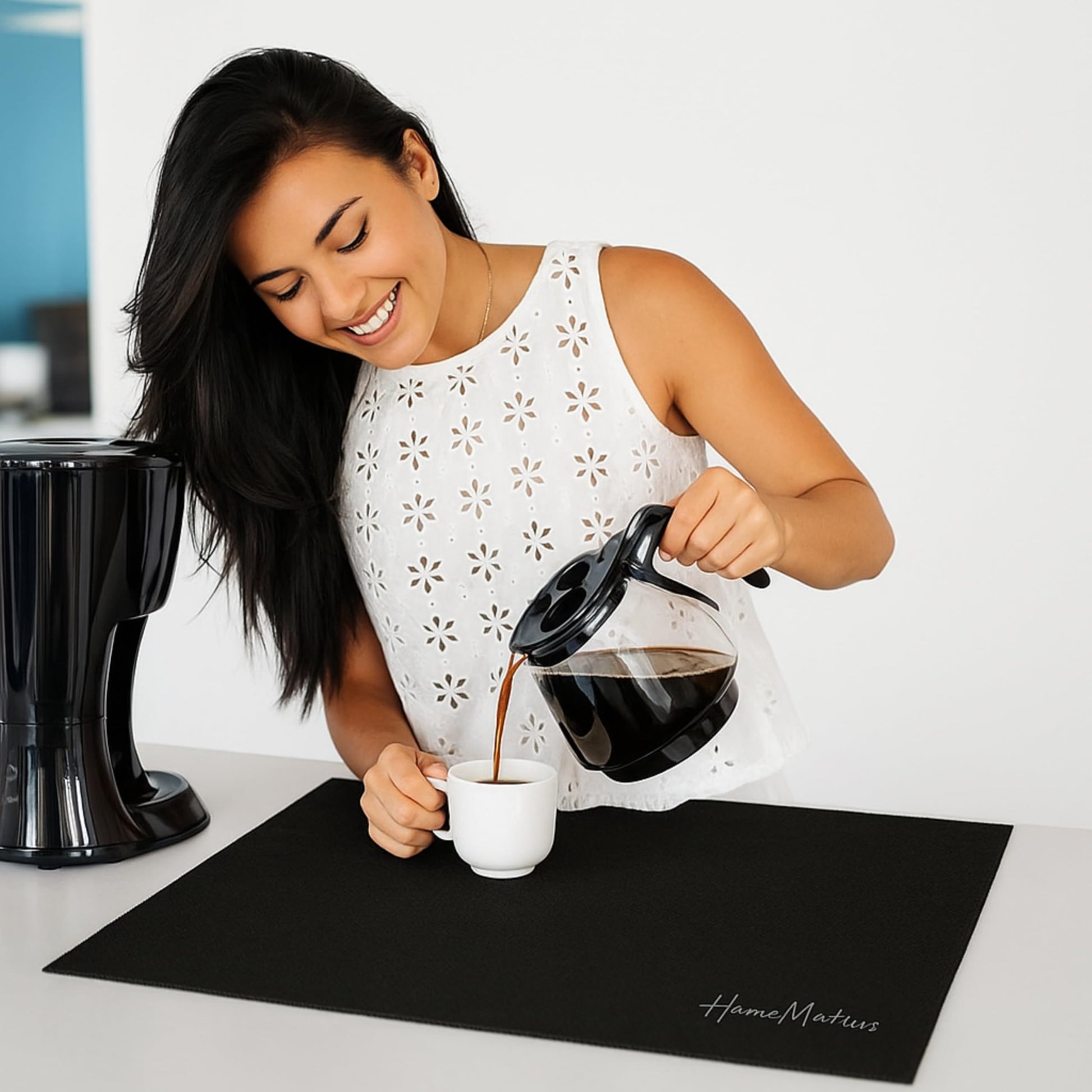 "🥑【ANTI-SLIP DESIGN AND EASY STORAGE】The non-slip surface of the mat ensures that your cookware stays stable and prevents accidental slips and spills, ensuring a safe cooking experience. Simply unroll and store it in a space-saving manner. Rolls out flat so the edges don't curl up. A ring is also included.❗️"