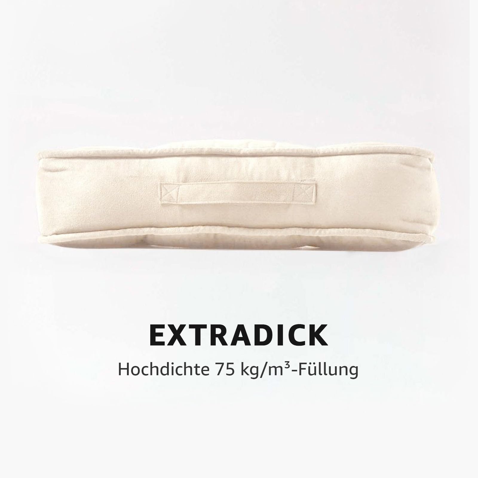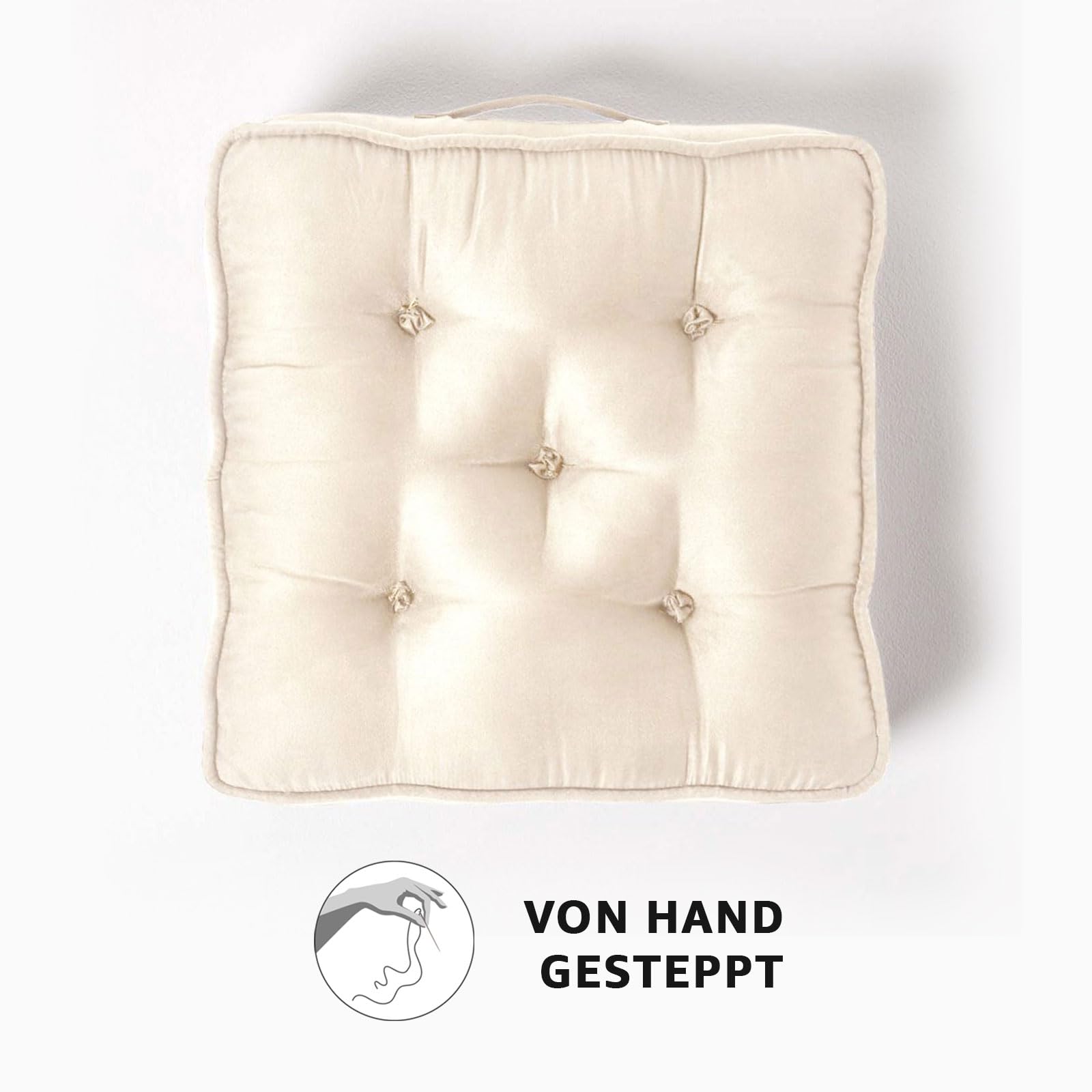 Homescapes Thick Seat Cushion 50x50 cm Cream, 10 cm high chair pad/seat booster with velour cover, solid floor cushion with carrying handle