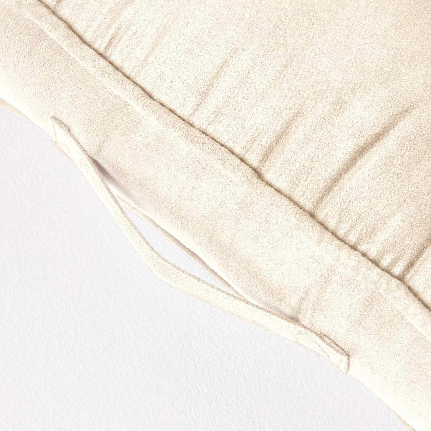 "Comfortable and firm padded thick seat cushion with handle and quilted, soft velour cover. Size approx.: W 20 x L 20 x H 4 inches. Color: Cream.