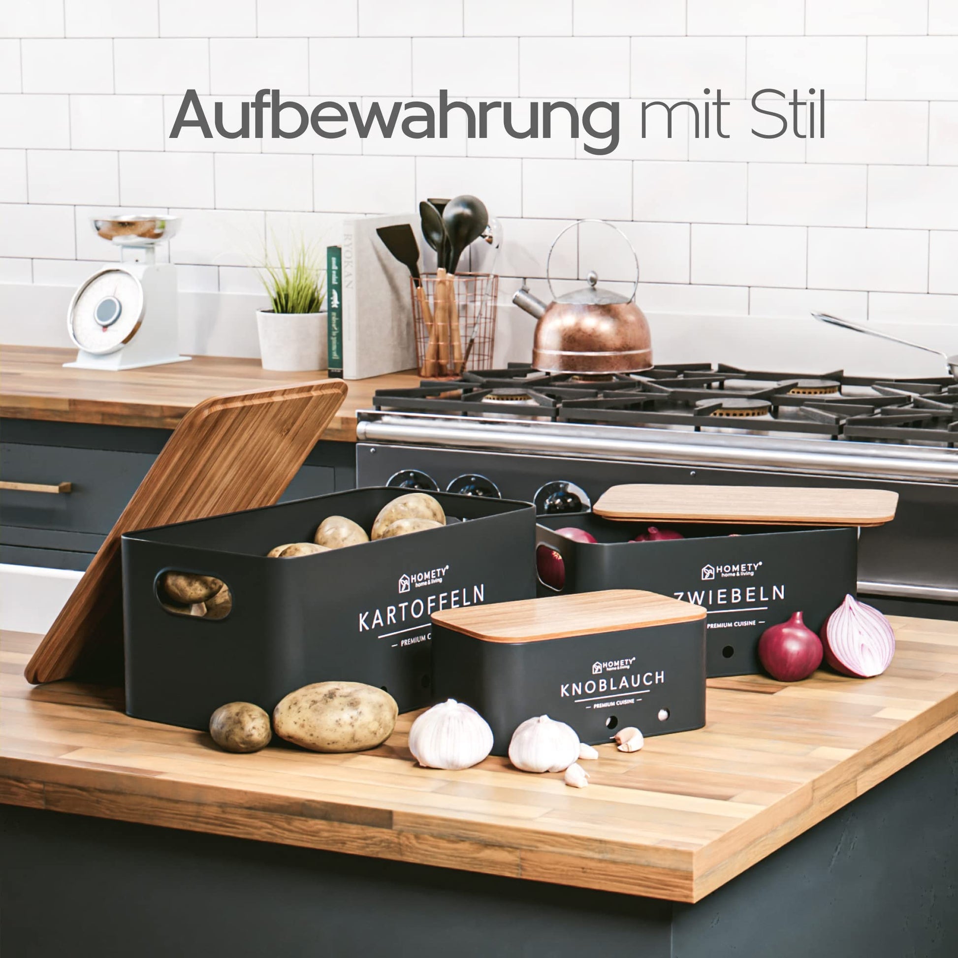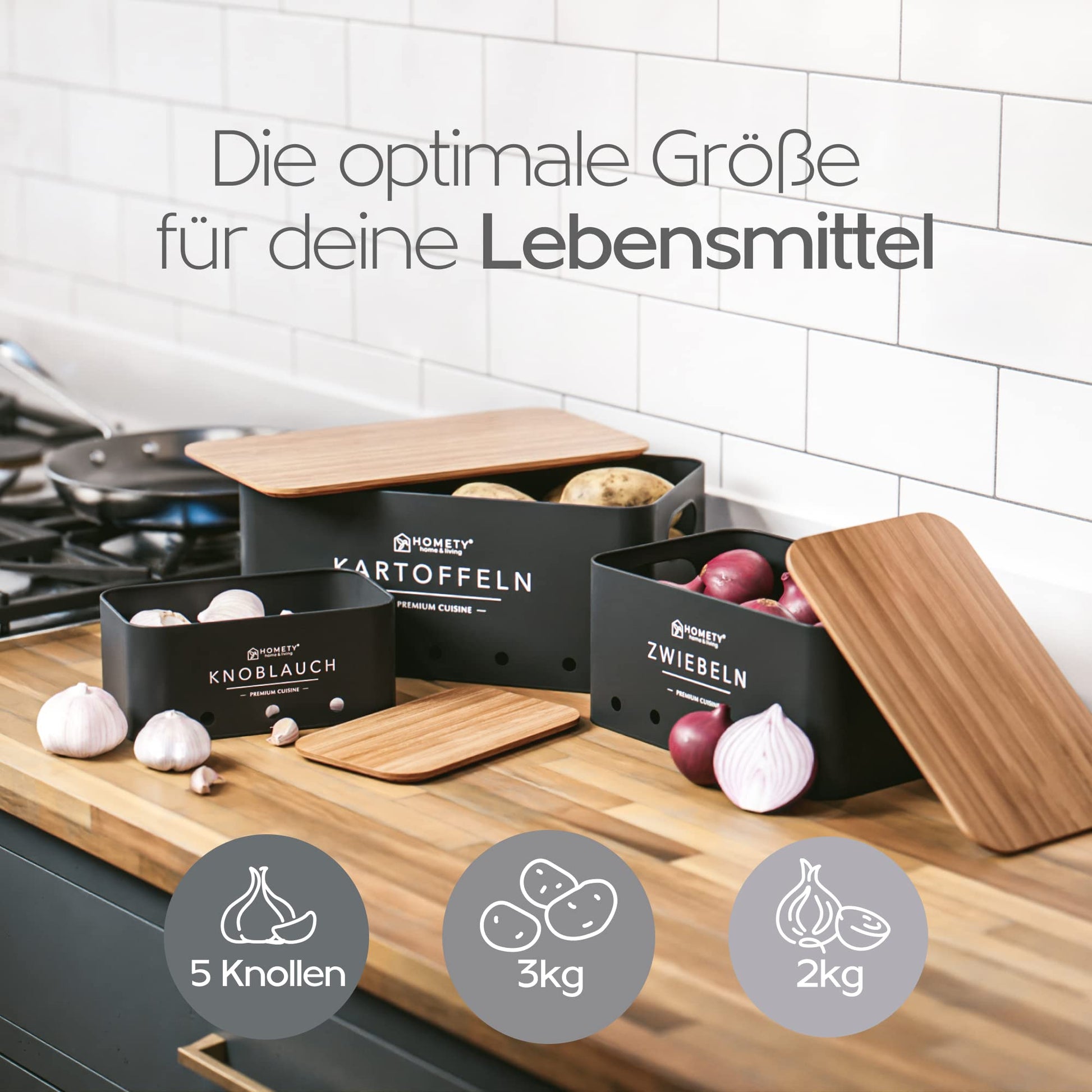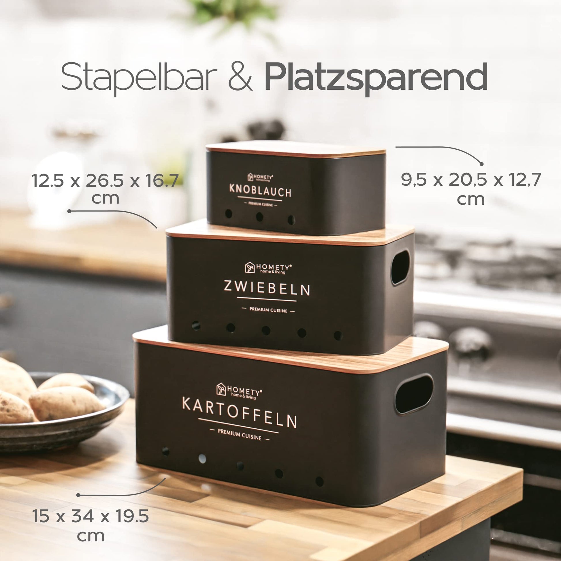 Homety Potato Storage Box [3 Pack] - Keeps Vegetables Fresh Longer - Ideal Way for Onion, Potato, and Garlic Storage (Black)