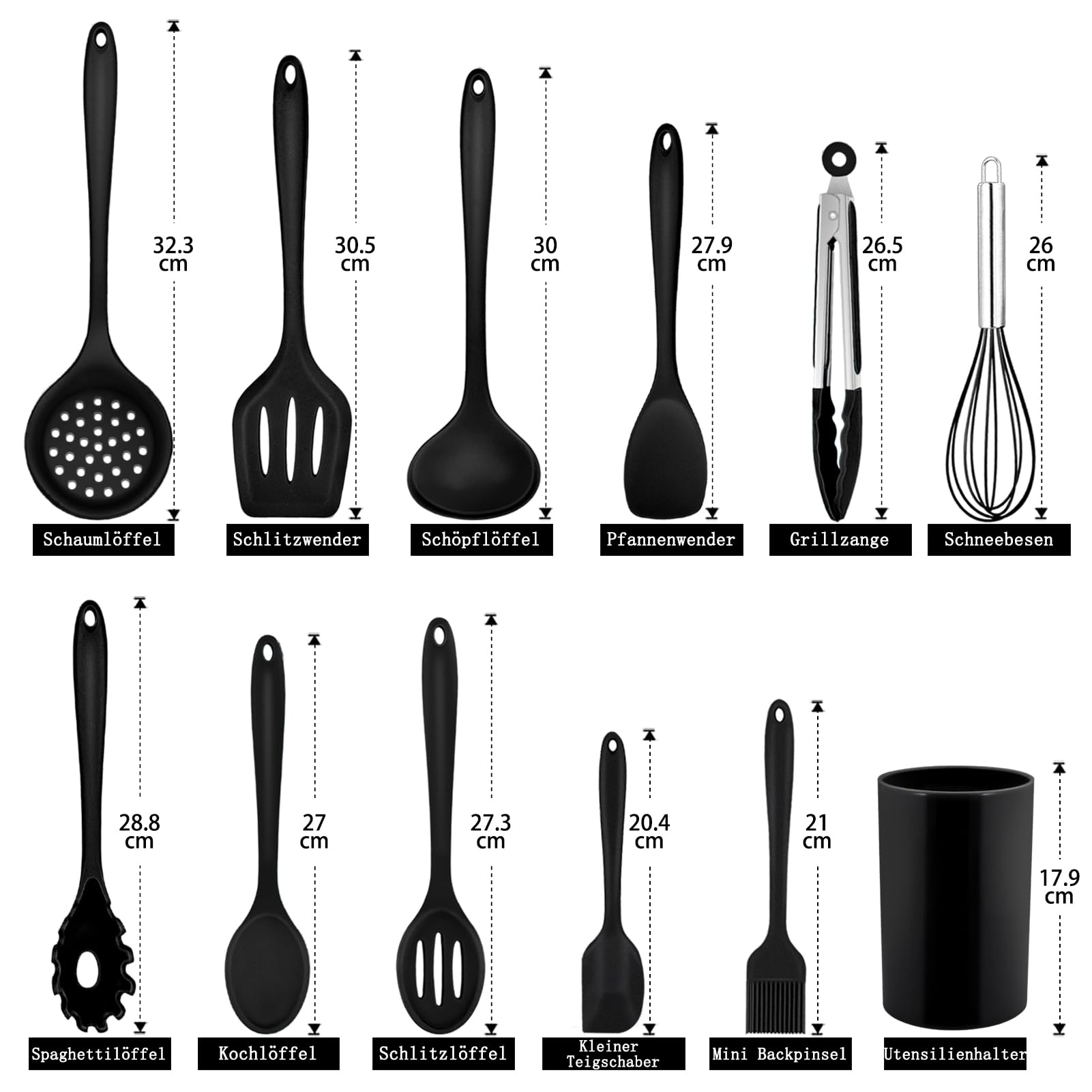 Homikit Silicone Kitchen Utensil Set, 12 Pieces Black Cooking Utensils Cookware, Heat-Resistant Cooking Utensil Set with Utensil Holder, Healthy & Non-stick, Dishwasher Safe