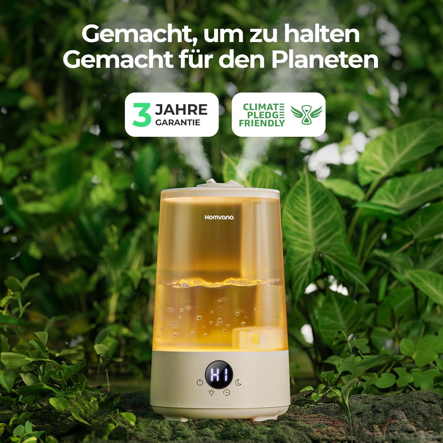["3-in-1 Humidifier for All Your Expectations] Cooler Humidifier + Aromatherapy + Mood Light, all in one purchase! Let Homvana H101 be the best companion in your bedroom.","[Unique SilentSpray & Undisturbed Sleep] The room humidifier features a sleep mode with display off and exclusive SilentSpray technology to ensure noise levels below 16 dB. Even babies sensitive to noise can sleep deeply and soundly all night long.","[100% Certified Safety] The room humidifier has been certified worldwide by ETL, FCC, CE, and UKCA standards, providing risk-free and BPA-free humidification for all family members. In addition, the automatic shut-off feature eliminates any risk of dry running or fire. Perfect for babies!","[Easy Refilling & Cleaning] The top-filling design combines a removable water tank with a wider 13 cm opening to keep the table dry and make refilling and cleaning a breeze.","[Soothing Aroma] No additional aroma diffuser needed! Simply add 2 - 6 drops of essential oil to the built-in aroma pad and let the fragrance slowly fill the room with your favorite scent. Turning your space into a wonderland for yoga, mindfulness, and meditation."]