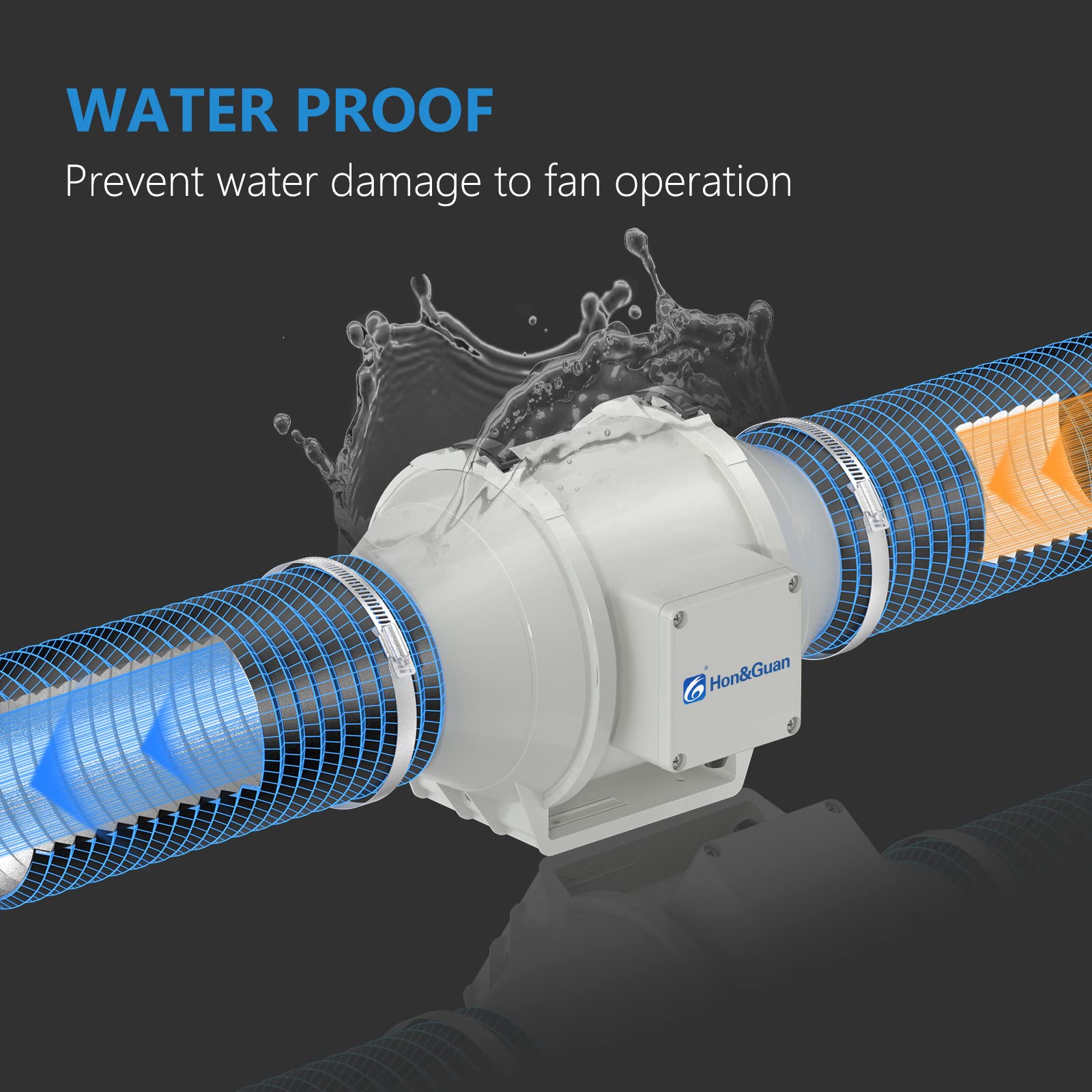 ["Highly efficient: Hon&Guan Quiet Tube Fan with Power: 28/33W, Speed: 1850/2250 (RPM); Air Volume: 248/284 (m³/h), Noise: 26/31dB.",