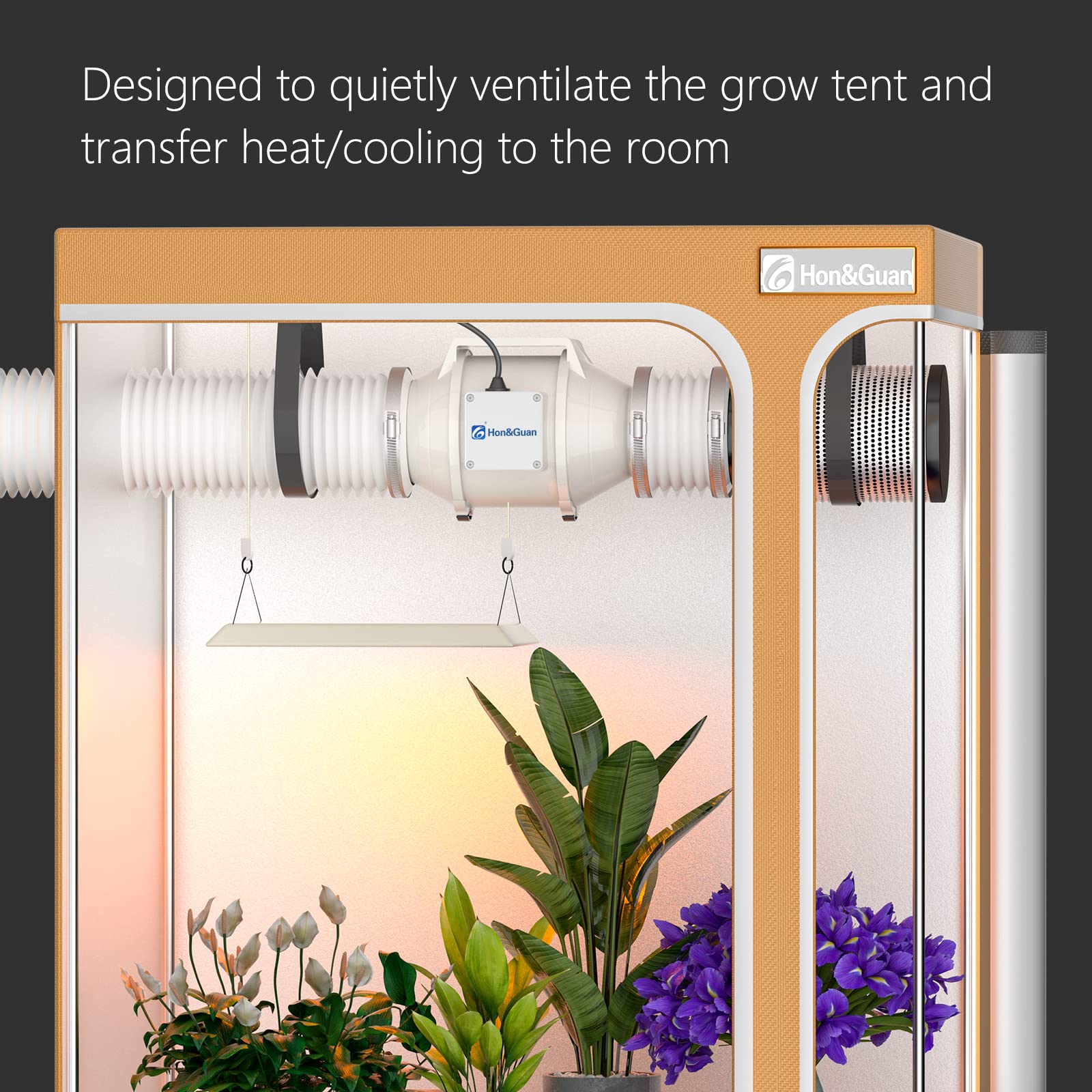 Hon&Guan 125mm Inline Duct Fan Quiet Tube Ventilation Fan Exhaust Fan with 1m EU Power Cord 284m³/h for Office, Warehouse, Hydroponics, Bathroom, Grow Rooms