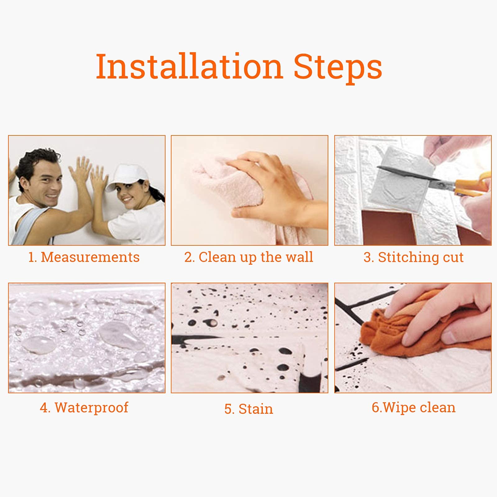 ["Easy to install: This tile sticker peels off and sticks to a clean, smooth, and dry surface. You can also cut the shape of switches and sockets that fit the wall with scissors and adjust the shape.","Waterproof and stain resistant: This sticker has a waterproof effect. If stains appear on the sticker, simply wipe it lightly with a cloth to make the sticker as clean as new. It's very easy to clean up.","Save time: You only need to spend less time and energy to complete the room decoration. It helps to beautify the wall and cover the dirt stains on the wall, and can change your kitchen, bathroom, toilet, bedroom, etc., bringing you a personalized decoration style.","High-density foam layer: This sticker is made of PE cotton and sticks it to the floor. The wall can prevent it from falling off when there is a baby at home, even if you accidentally hit the sticker on the floor or wall, it will not hurt too much.","Durable: Our tile stickers are heat resistant, waterproof, and moisture resistant. The lifespan of these tile stickers is very long and can be as long as you want."]