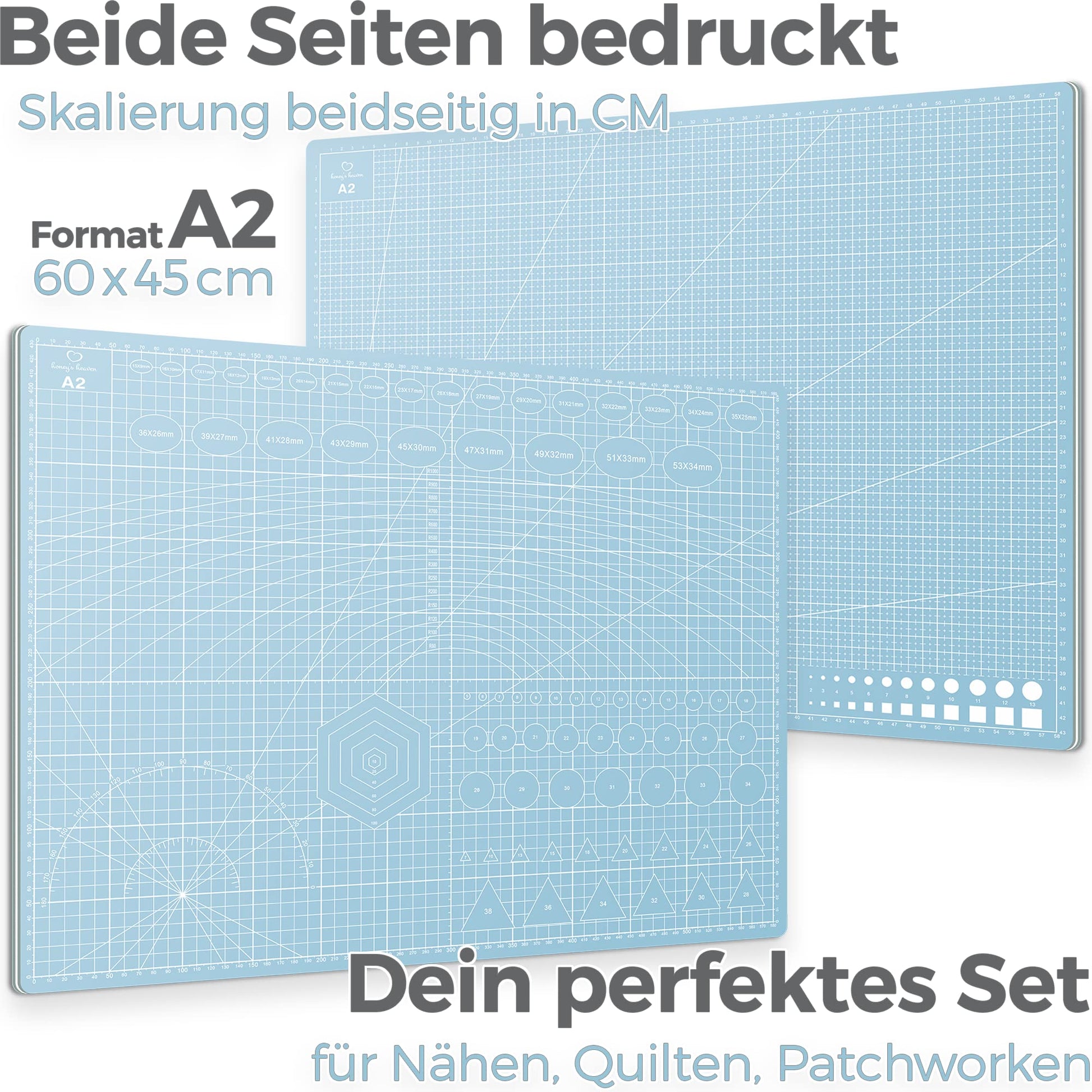 ["❤️ DOUBLE-SIDED CUTTING MAT - The double-sided cutting mat in the size of 60x45cm (A2) is made of 5-layered strong PVC with a self-healing surface. An excellent cutting mat.",