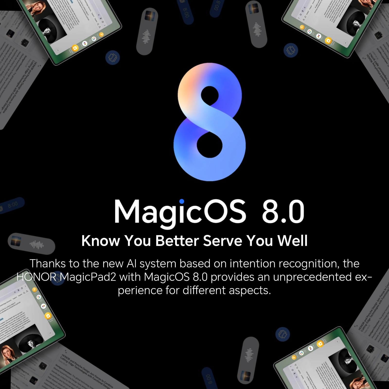 Snapdragon 8s Gen 3: The HONOR Magic Pad2 is powered by a Snapdragon 8s Gen 3 with TSMC's 4nm process technology and the same architecture as the Snapdragon 8 Gen 3 flagships, making multitasking scenarios like office, gaming, and rendering a breeze.