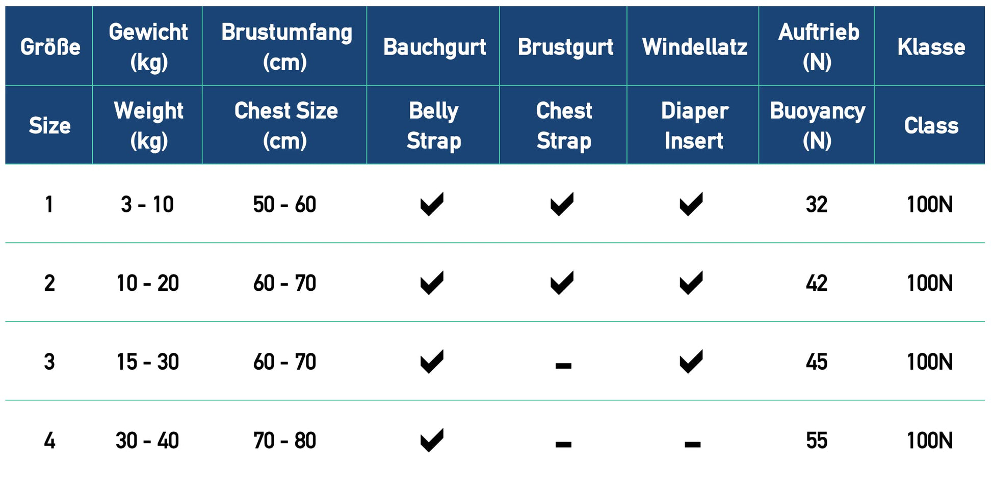 ["Size"] 7 - 22 lbs Body Weight - Chest Size: 20-24 inches - The indication of body weight primarily refers to the buoyancy of the life jacket. This is only a guideline for fit. Please also consider the chest circumference. If additional clothing is worn under the vest or the body weight is at the upper end of the weight range, you should choose a size larger. Please note, this 7-22 lbs vest runs very small.