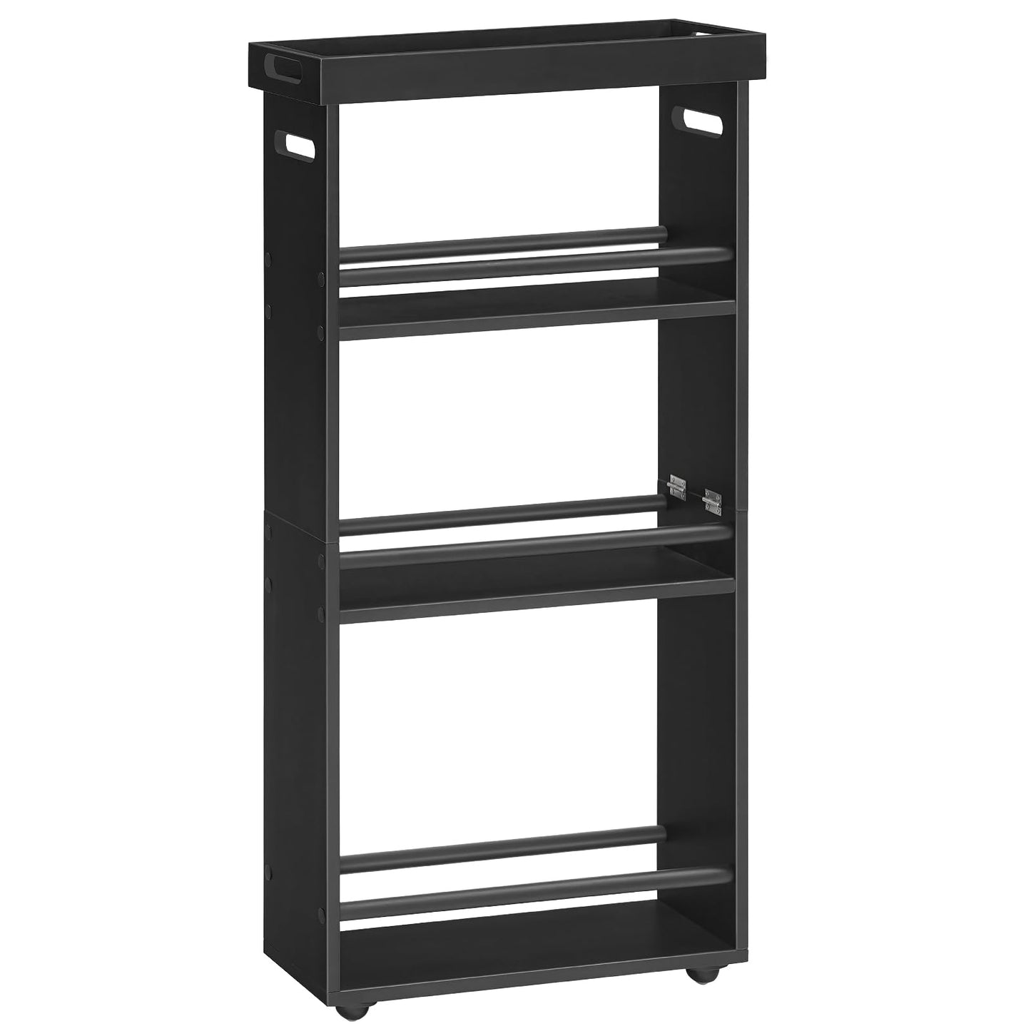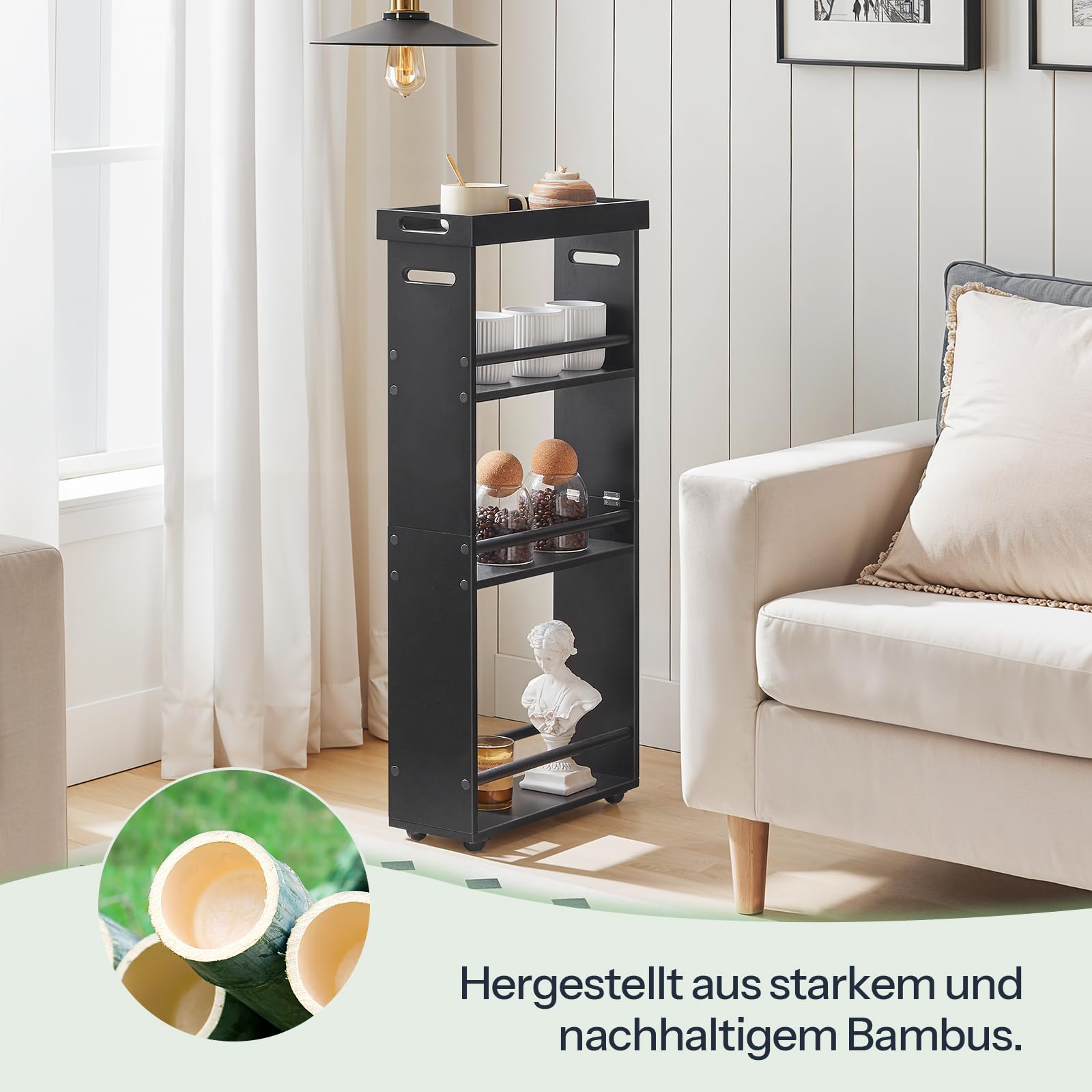 HOOBRO 4-tier Slim Serving Cart, Kitchen Cart made of bamboo, Kitchen Shelf with 360° Rotatable Wheels and Rails, for Small Spaces in Bathrooms, Bedrooms, Laundry Rooms, Black EBB40TC01N1