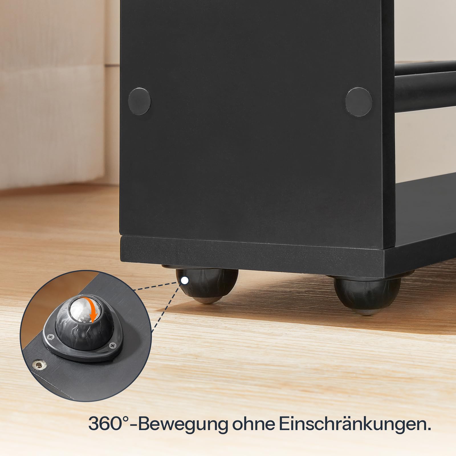 "Simple luxury: The black veneer gives this compact 4-level cart a touch of understated luxury. Its simple and elegant appearance complements your other furniture and adds a touch of sophistication."