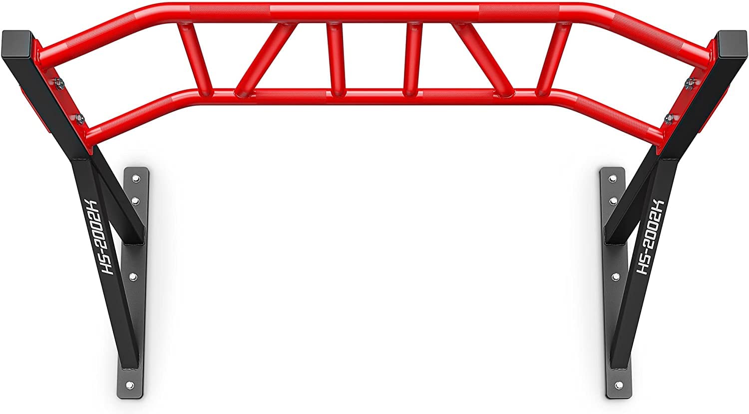 ["MULTIGRIP: The power station is different from the others because it consists of a grid which allows for 14 different training possibilities. Knurled grip surfaces prevent slipping", "FAST ASSEMBLY: With the included assembly instructions, the pull-up bar is assembled in no time. It is attached to the wall with 8 mounting screws", "ROBUST CONSTRUCTION: The bracket of the back trainer HS-2002K is made of high-quality, powder-coated, 45 mm thick steel, which can withstand a load of 150 kg", "SMALL DIMENSIONED: Especially in small spaces, the choice of size of any training device should be carefully considered. The HS-2002K with its 123.5x59 cm is ideal for such spaces", "TRAINING POSSIBILITIES: Pull-ups in overhand and underhand grip, hammer grip, and many other training variations. The abdominal trainer HS-2002K makes all this possible"]