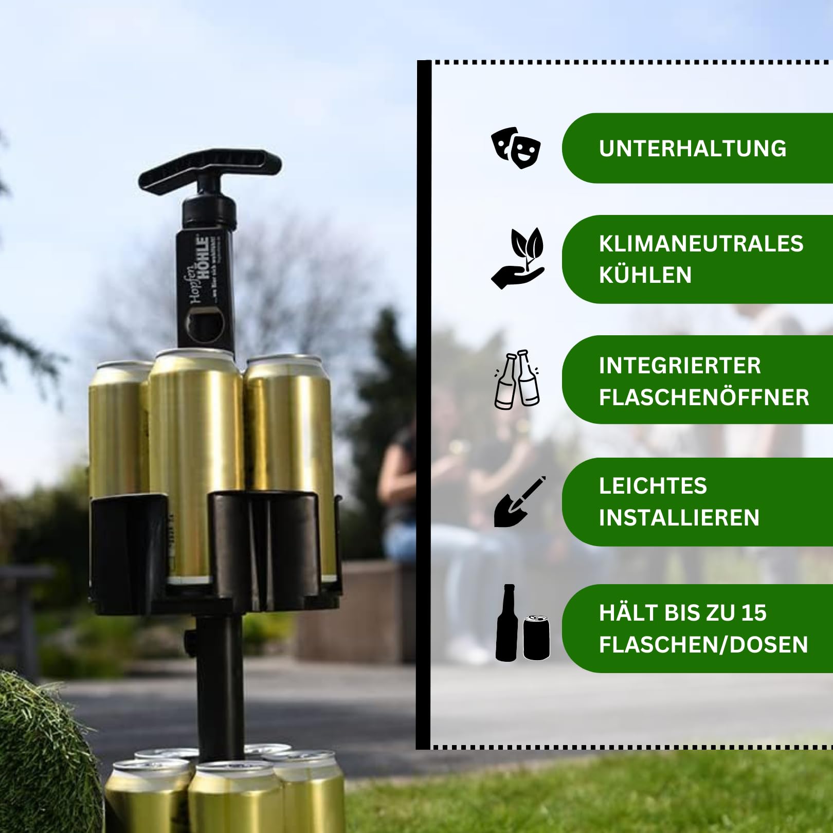 HopfenHöhle - The Original! (No elevator) I Outdoor Ground Beer Cooler I Up to 15 Different Bottles (0.33/0.5 l) I Easy Installation I Robust Materials I Incl. Game