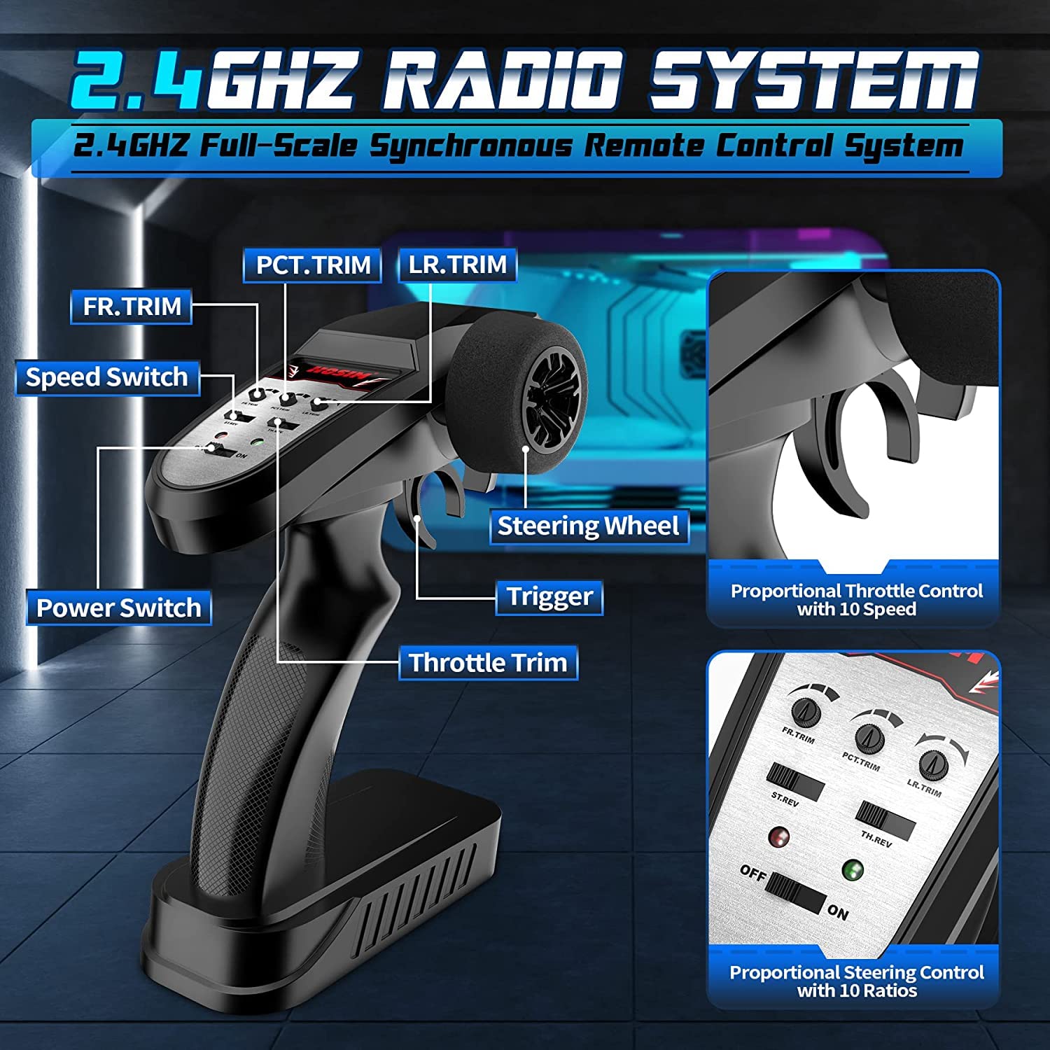 ["【Excellent speed & updated steering system】-- Equipped with a powerful 2847 brushless motor that equals ultra-high speed and allows for a top speed of 68km/h (40 MPH), making the RC truck faster than others. Additionally, the steering system has been updated to ensure smooth control during races.",