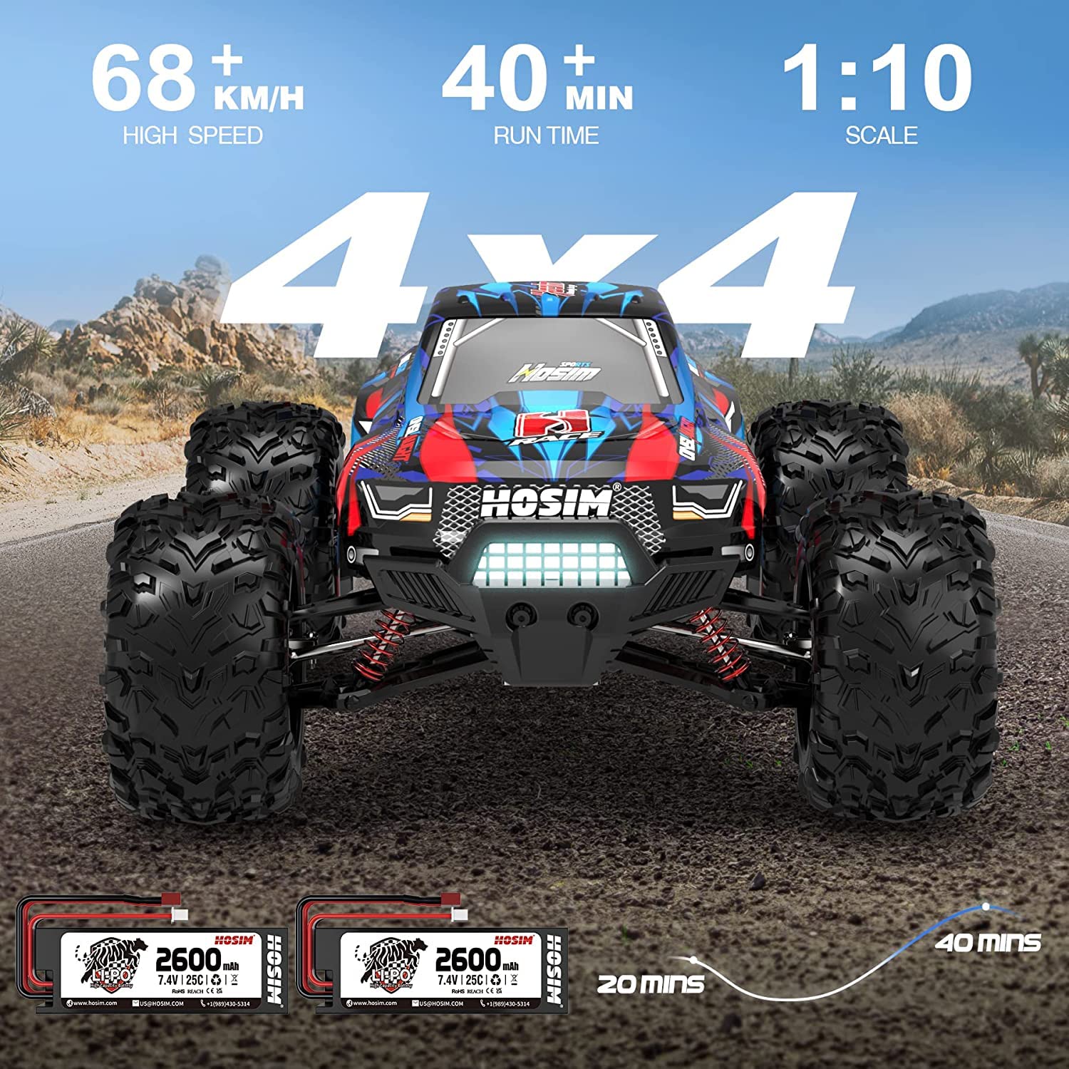 Hosim RC Car, 1:10 Brushless Remote Control Car 68+ km/h, RC Drift Car 4WD with 2 Batteries, Offroad Electronic Toy for Kids and Adults (X08)