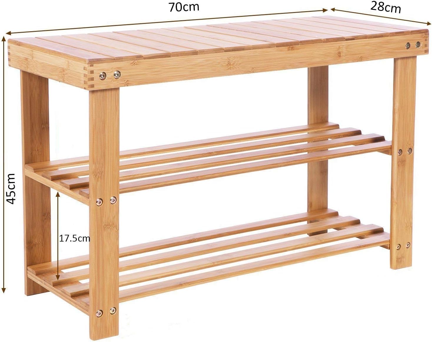 Hossejoy Bamboo Shoe Cabinet Bench Shoe Rack Shoe Bench Bathroom Shelf Bamboo Shelf 3 Shelves - 70 x 45 x 28 cm (WxHxD)