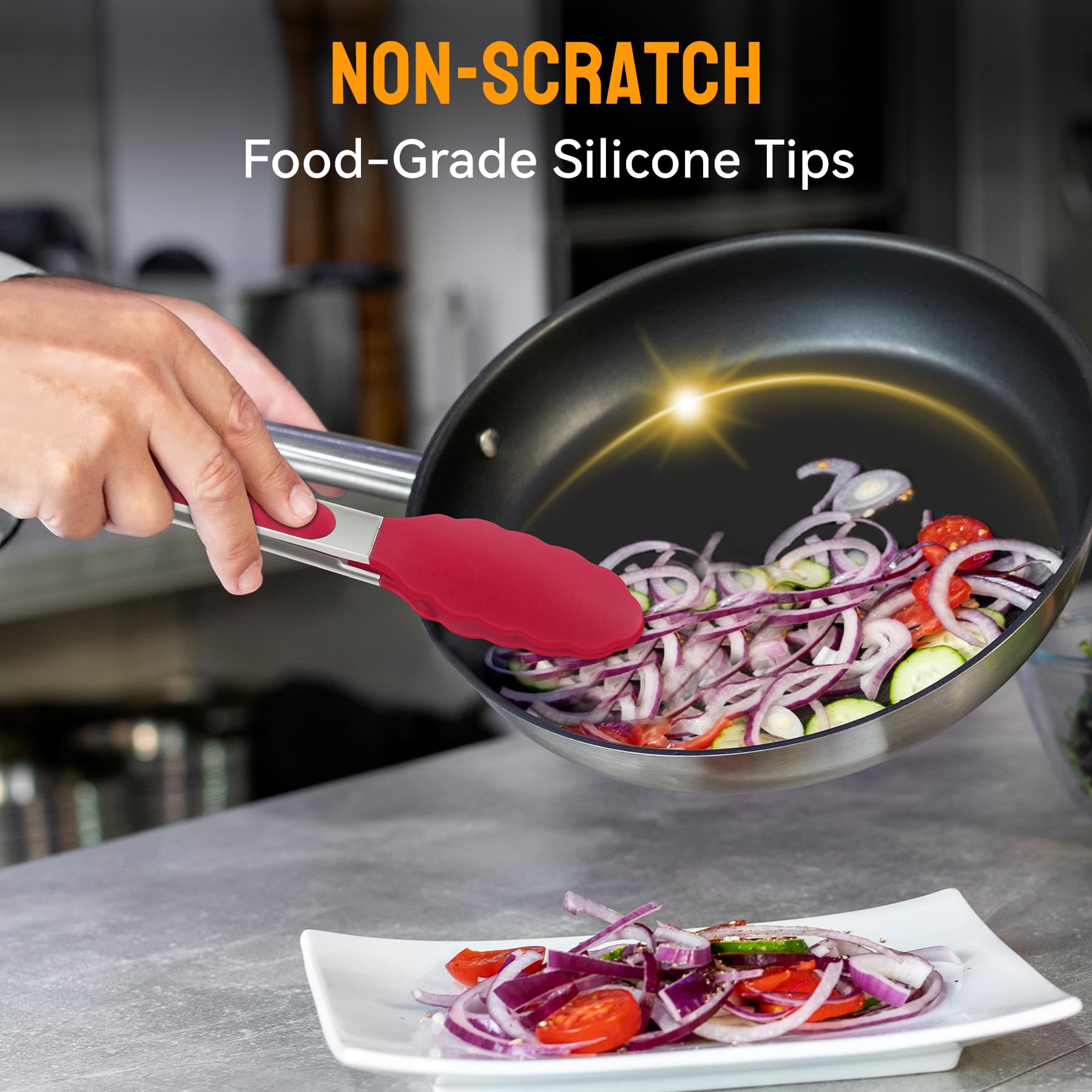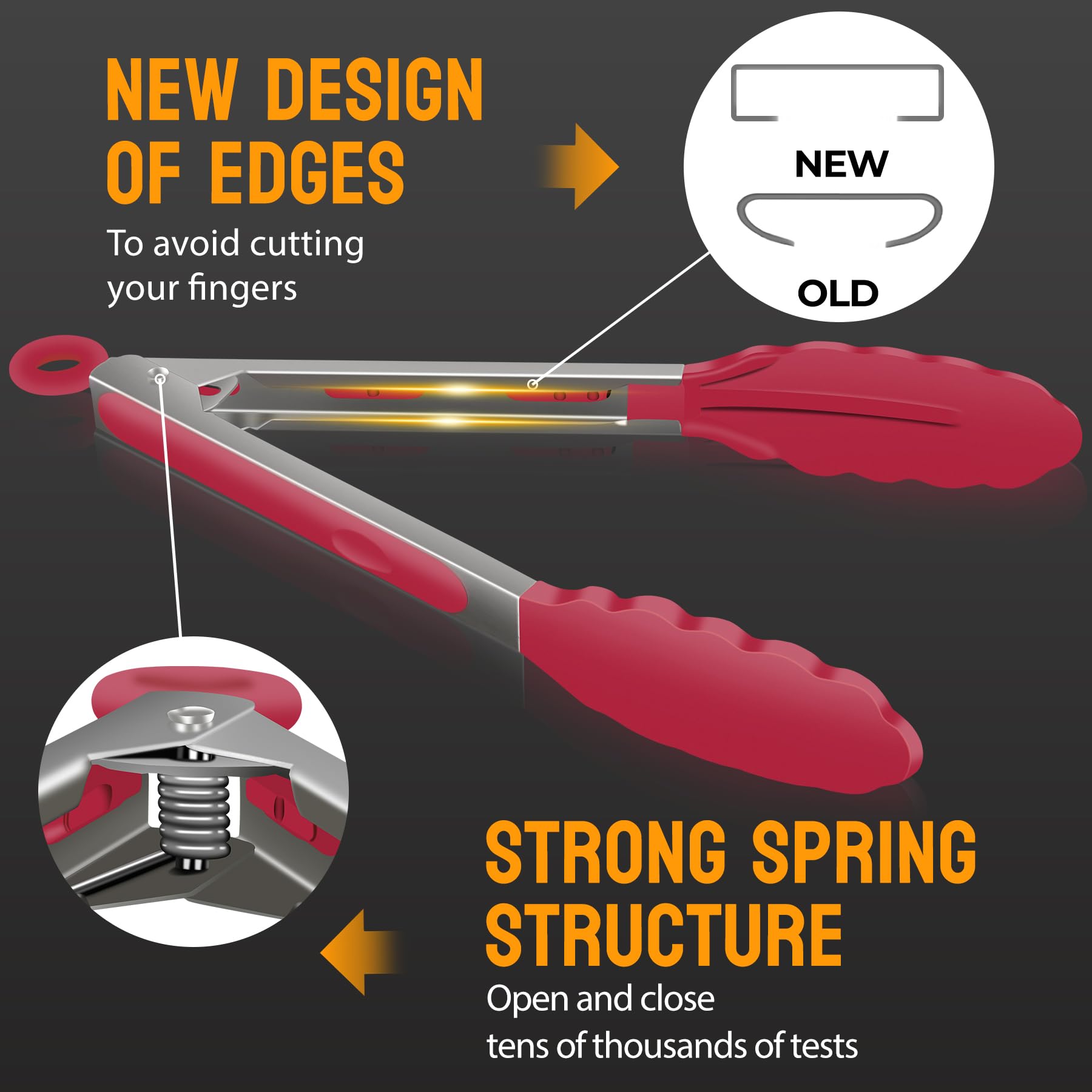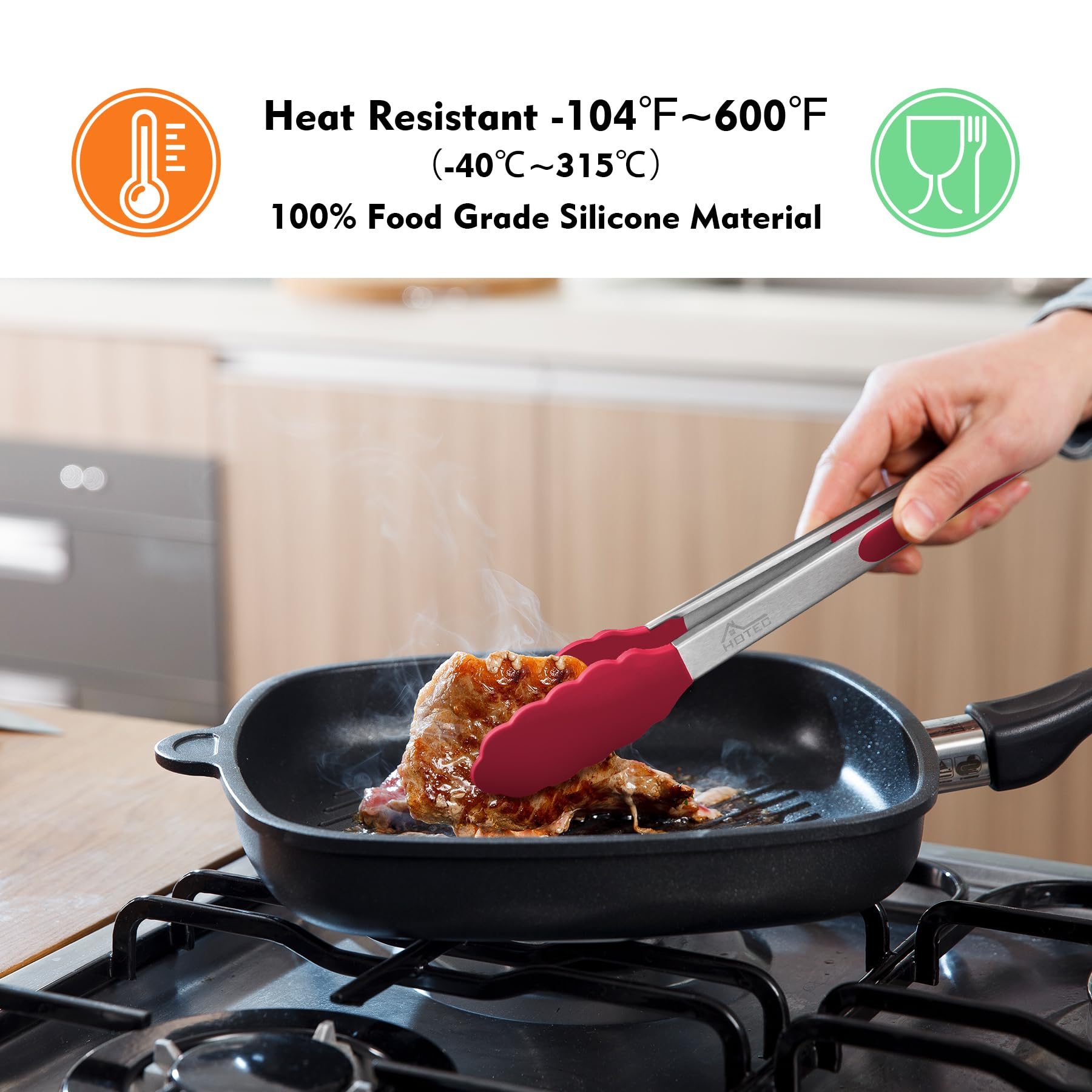 ["Top-Quality: Hotec kitchen tongs are made of high-quality stainless steel, durable, heat-resistant, rust-resistant, corrosion-resistant, lightweight, easy to handle, forever like new. This cooking tong comes in 2 sizes, 9 inches and 12 inches.","Easy to store: This kitchen tong has a locking mechanism, pull the ring to lock and press to unlock, super easy operation. Hang it after use with the hanging loop or put it in the drawer by pulling the ring to lock it, space-saving.","ENGINEERING FOR SAFETY: Updated new design pattern for the handle, better protects your hands from cutting on the edge when gripping the handle. Easy grip control and prevents wobbling and risk of burns","Easy to use: The handle is padded with silicone, good for thumb rest and provides good grip and control. The silicone tong tip is heat-resistant and less prone to scratching on the pan. Easy to rinse, dishwasher safe.","Versatile: Basic kitchen utensils, perfect for basic kitchen tasks, indoors or outdoors, ideal for grilling corn, flipping burgers, serving salad, slicing roast meat, or as a grill turner and much more."]