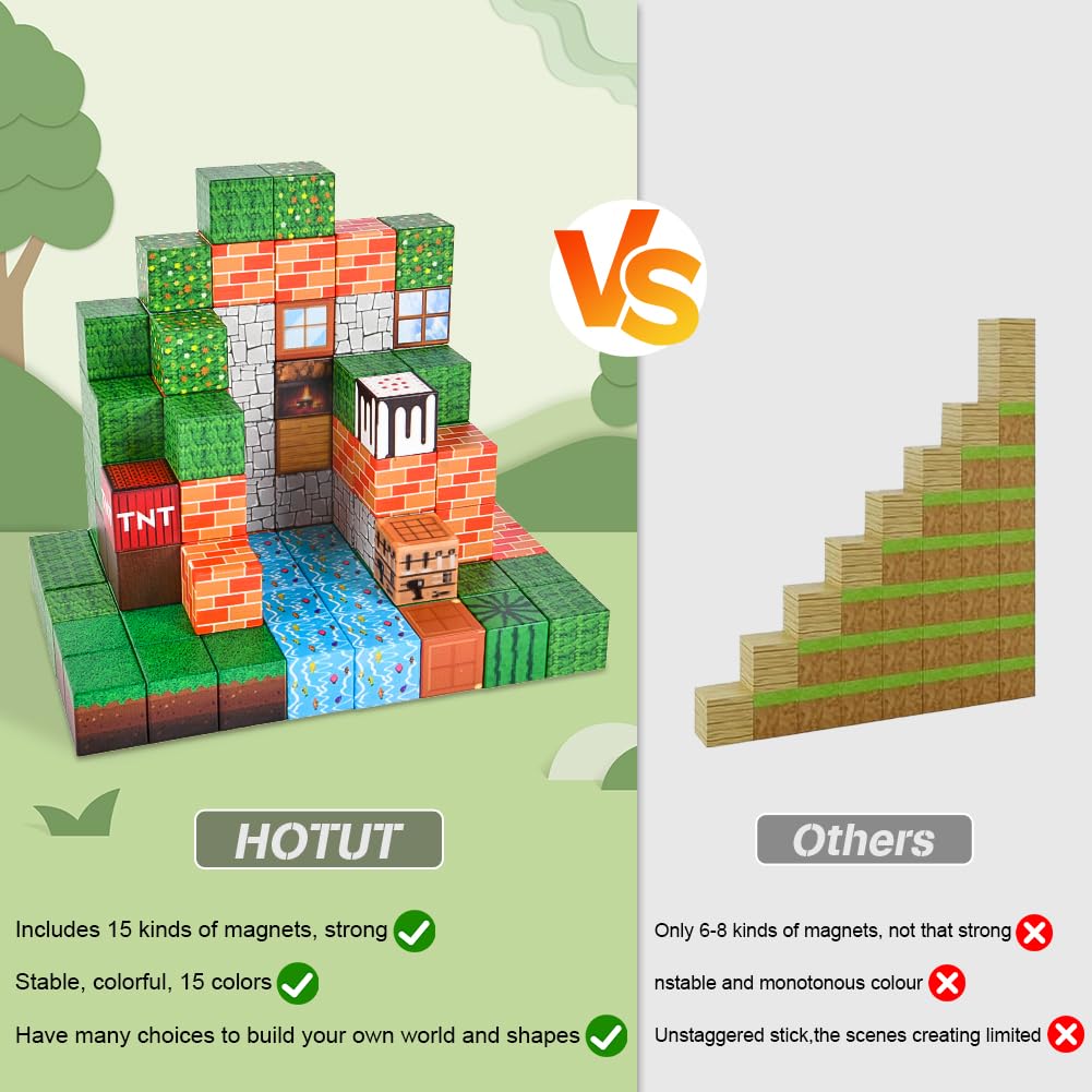 HOTUT Magnetic Building Blocks, 96 Pieces Magnetic Toy, Build Mine Magnetic World Set, Magnet Montessori Toy for Boys Girls