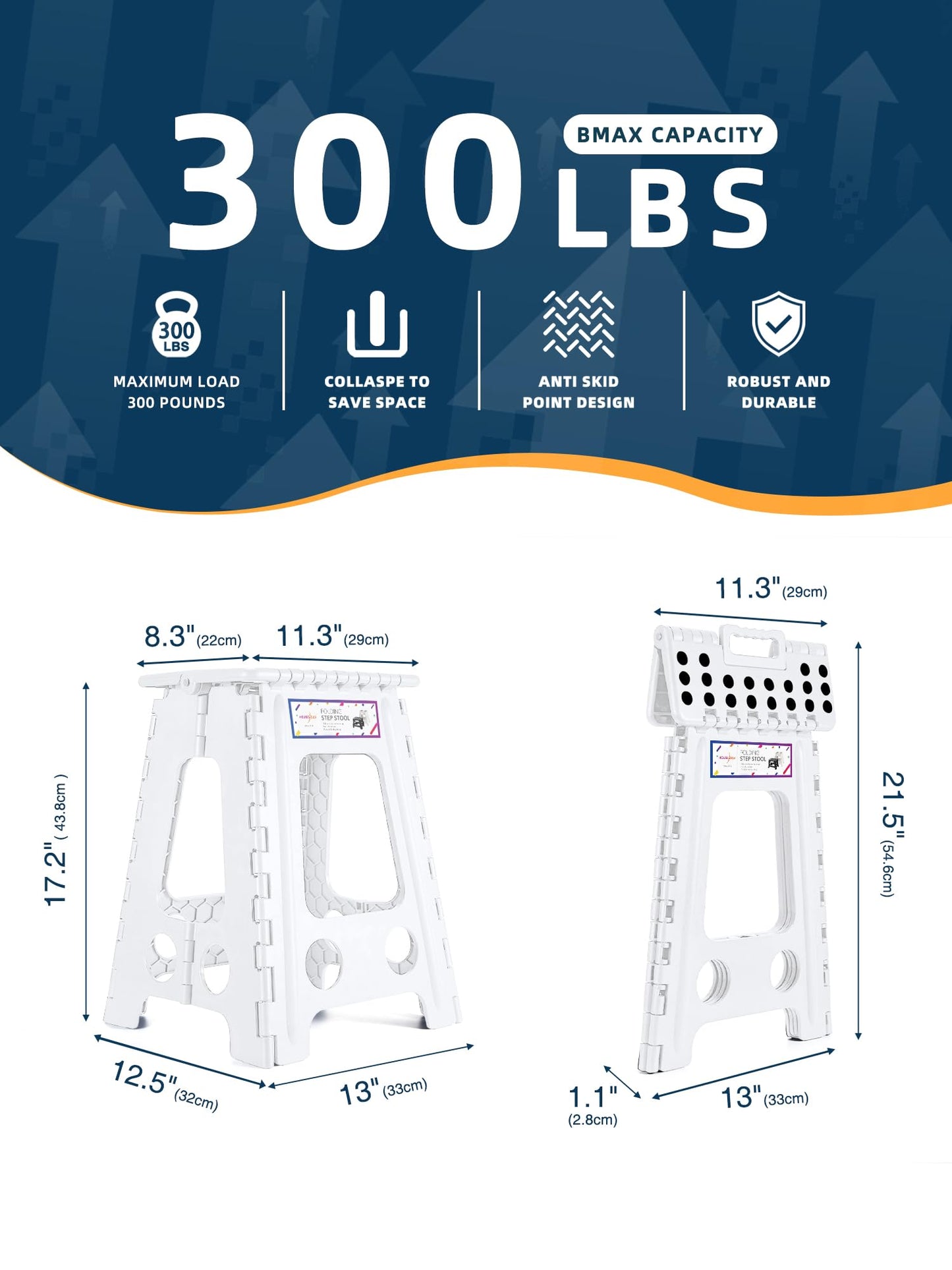 ["High Quality Folding Step Stool"]HOUSE DAY Folding Step Stool is made of high-quality PP plastic to ensure it is sturdy and durable, can hold up to 300lbs (approx. 136kg), so you can use it with confidence. Rounded corners are used all around to protect children's bodies from collisions and increase safety.