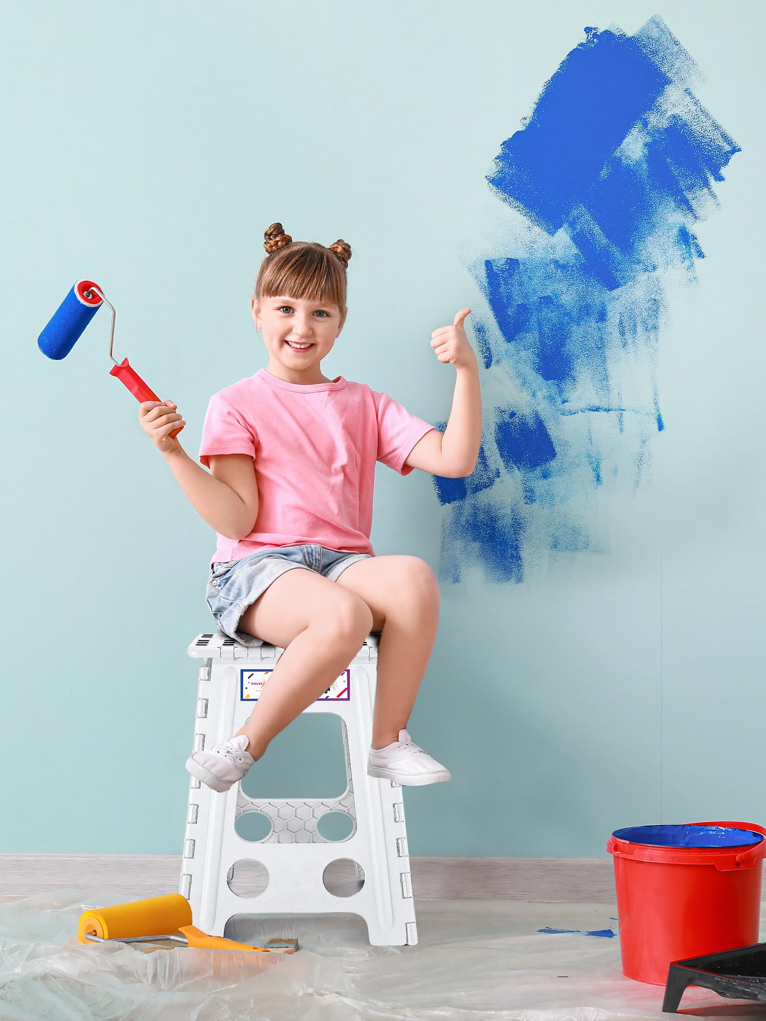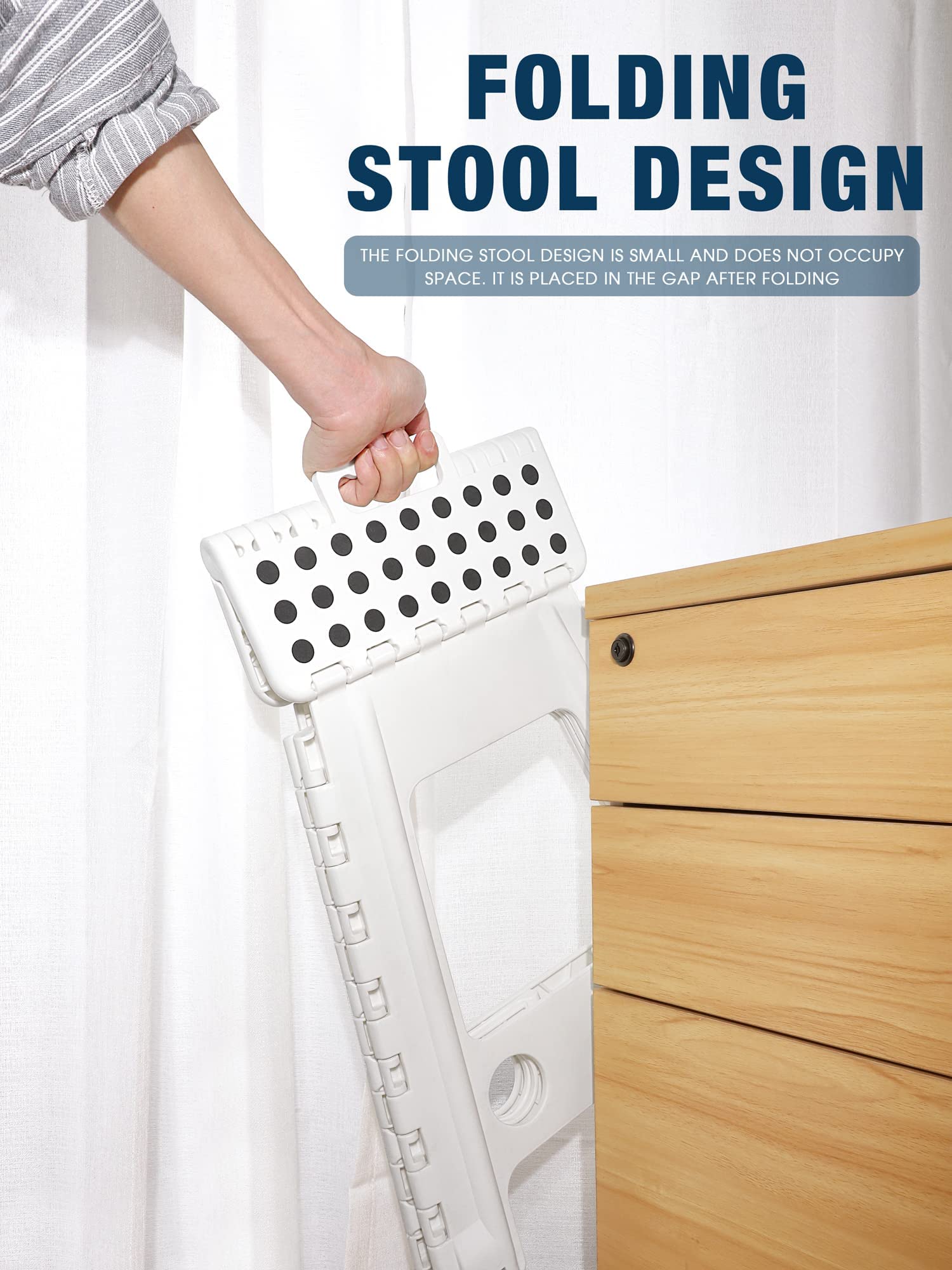 ["PORTABLE & NON-SLIP"] The stool is lightweight and can be easily folded into a compact size for easy carrying and storage. You can put the foldable stool in your car, school bag, or carry it with you, you can use it anytime, anywhere. The non-slip rubber bottom of the folding stool ensures it sits firmly on the floor and does not slip and wobble, providing a safer and more reliable experience when using.